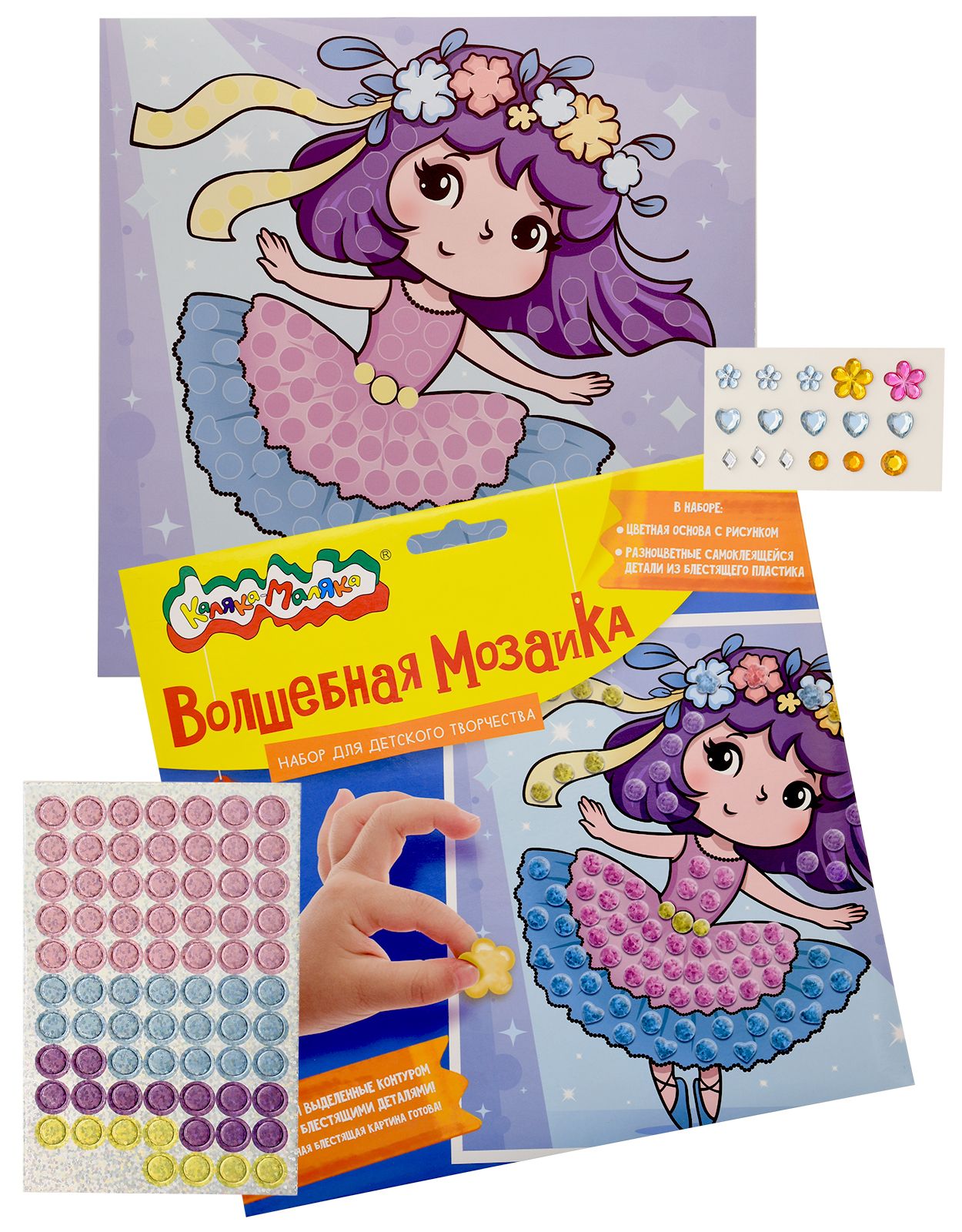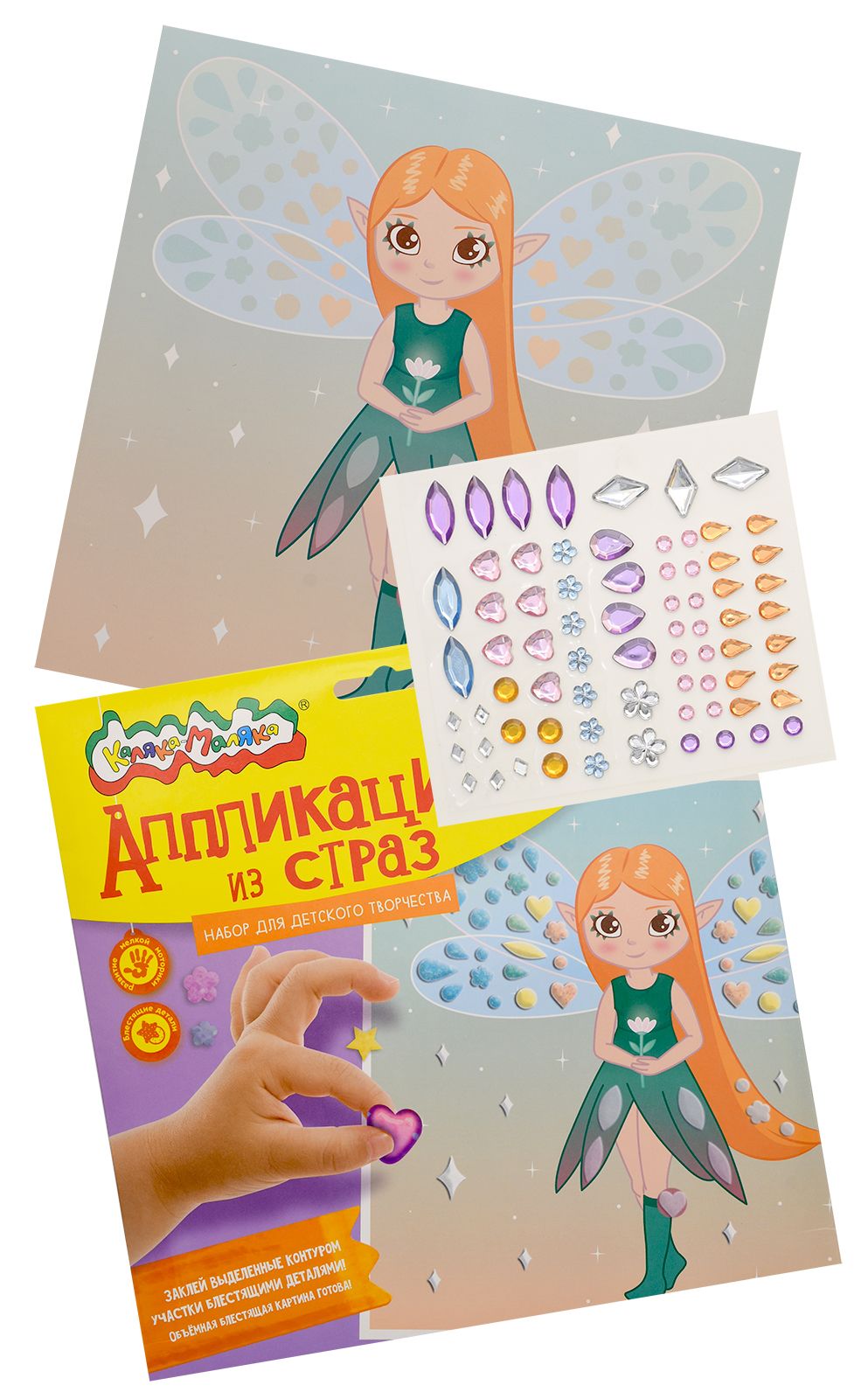 Вид материала для творчества: Аппликация Мин. партия и варианты упаковок: 1 / 100 Аппликация из страз Каляка-Маляка ФЕЯ 20х20 см 3+