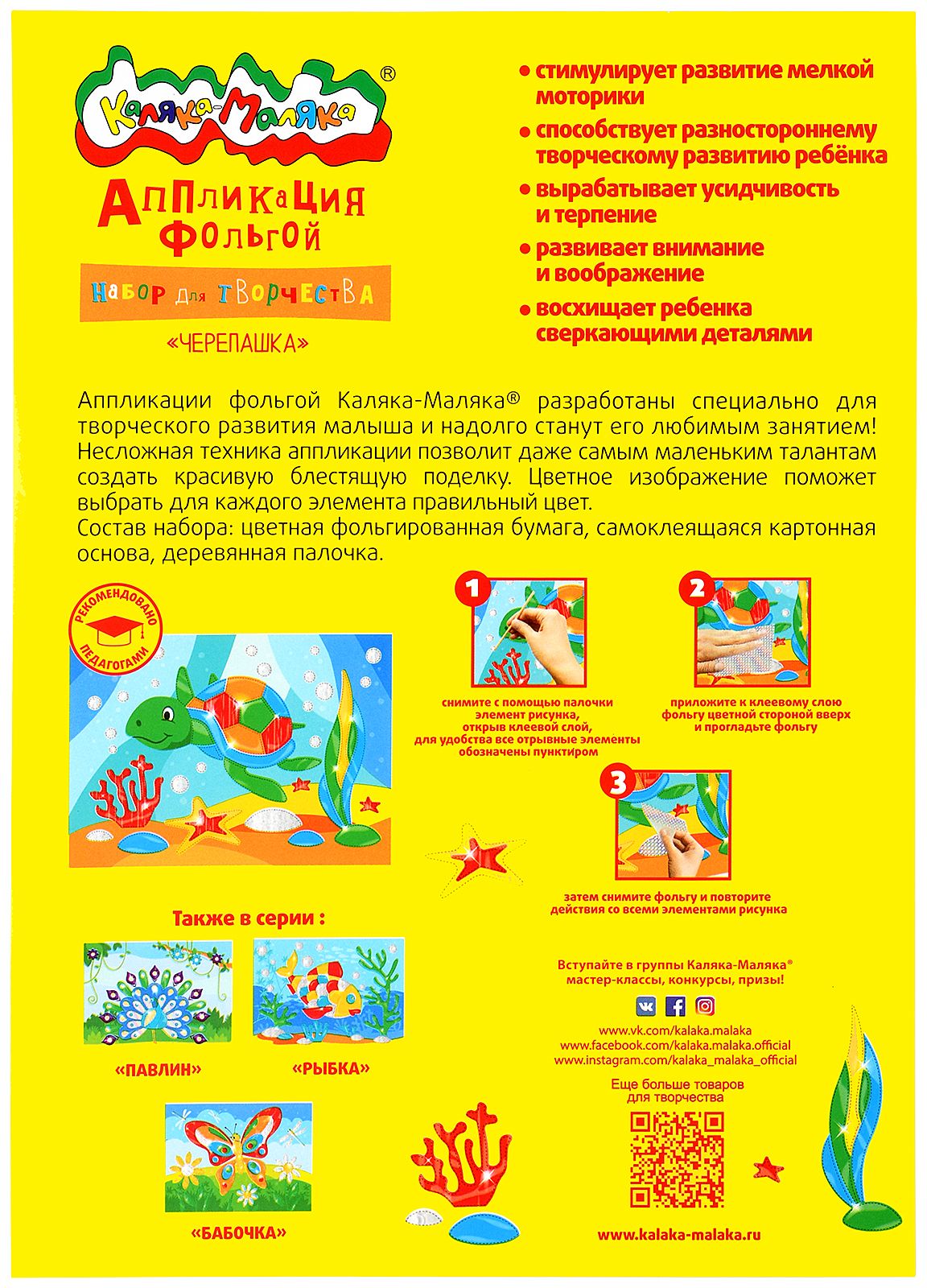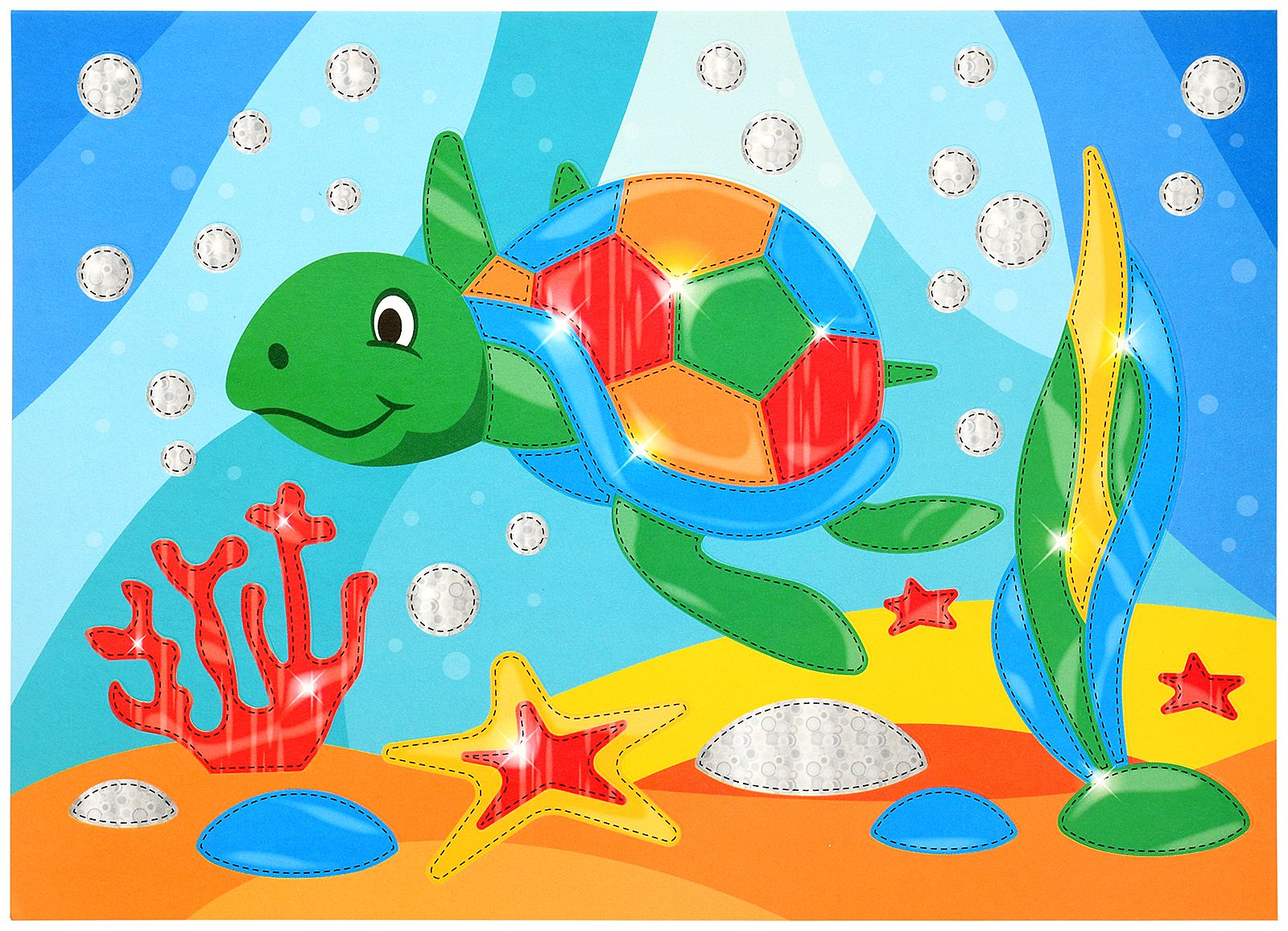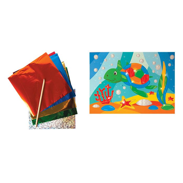 Вид материала для творчества: Набор для творчества Мин. партия и варианты упаковок: 1 / 25 / 50 Набор для творчества аппликация фольгой ЧЕРЕПАШКА, 6 цветов фольги