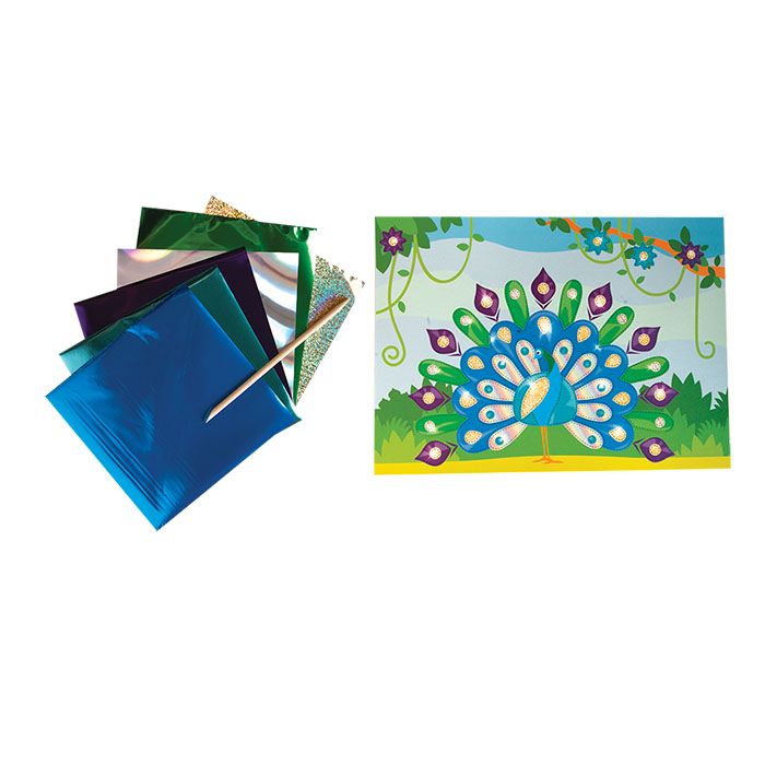 Вид материала для творчества: Набор для творчества Мин. партия и варианты упаковок: 1 / 25 / 50 Набор для творчества аппликация фольгой ПАВЛИН, 6 цветов фольги