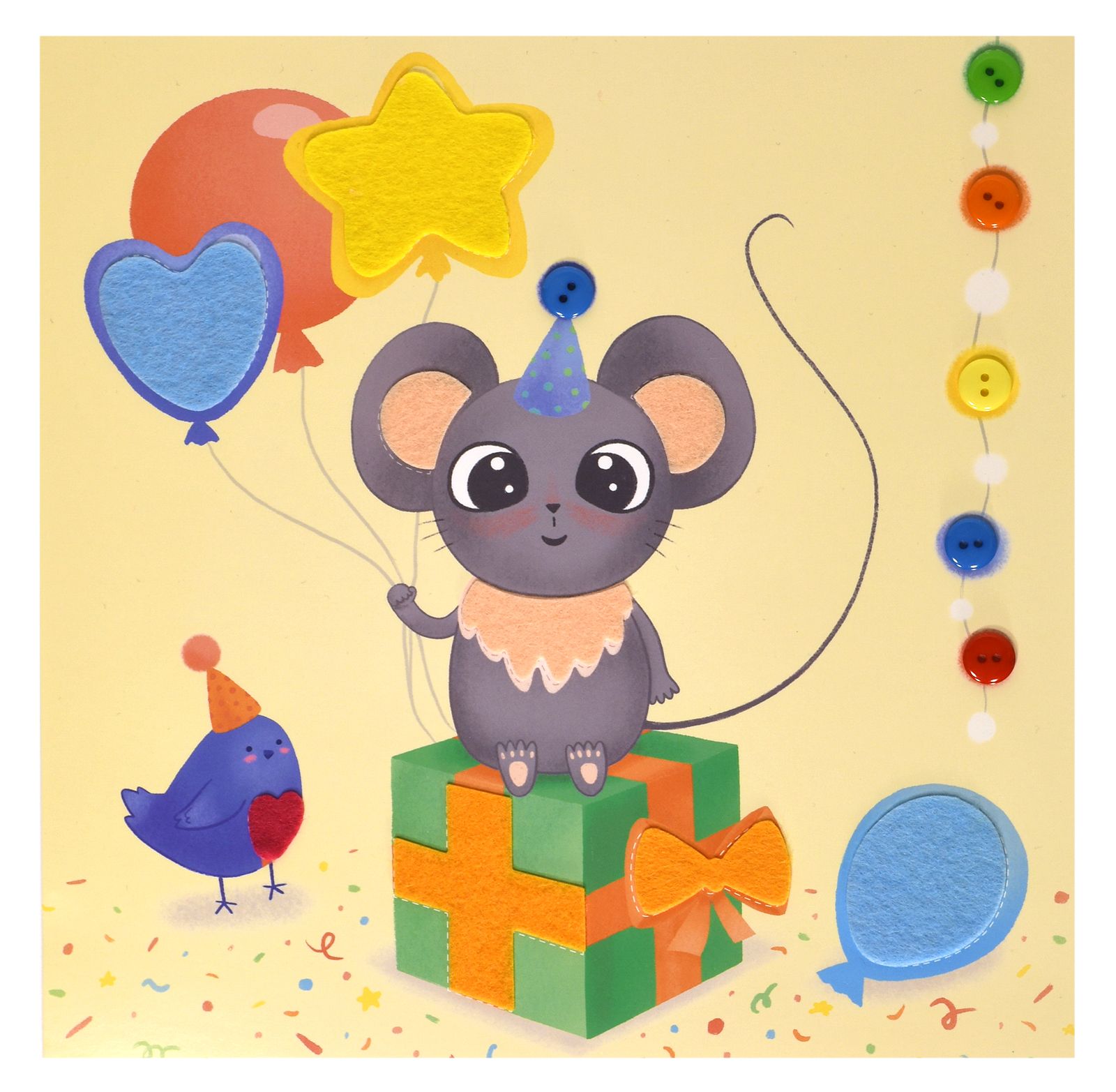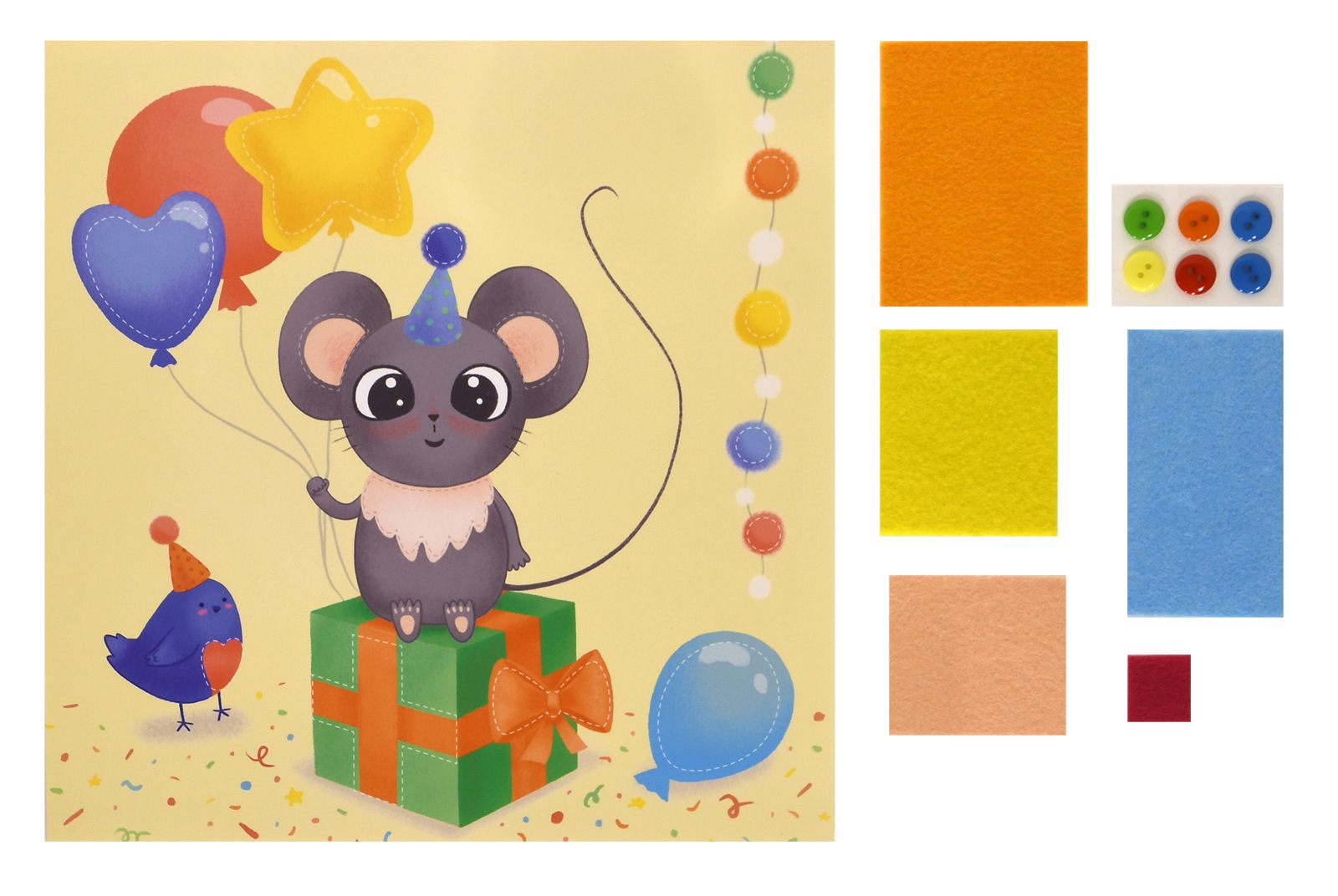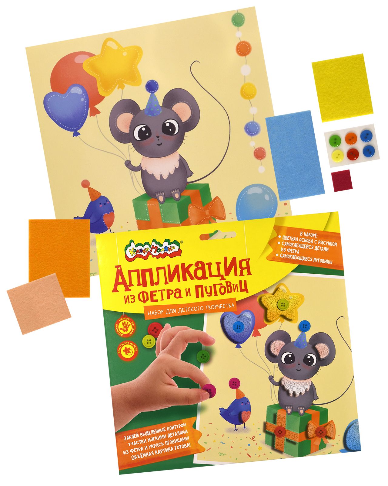 Вид материала для творчества: Аппликация Материал: пуговицы Мин. партия и варианты упаковок: 1 / 100 Аппликация из фетра и пуговиц Каляка-Маляка ПРАЗДНИК У МЫШКИ 20х20 см 3+