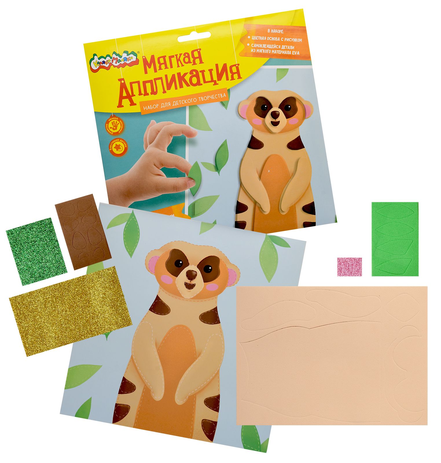 Вид материала для творчества: Аппликация Мин. партия и варианты упаковок: 1 / 100 Аппликация мягкая ЭВА Каляка-Маляка СУРИКАТ 20х20 см 3+