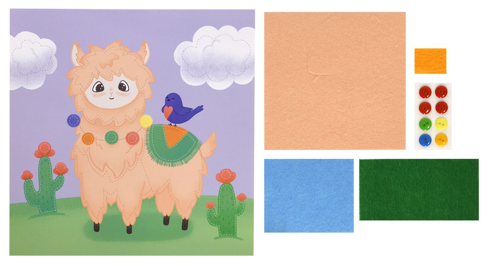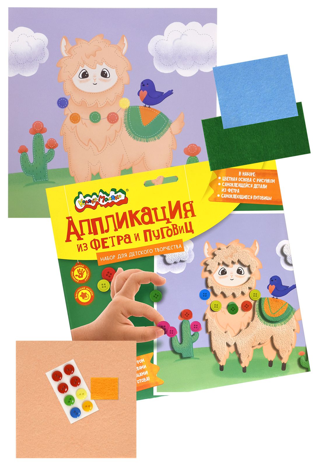 Вид материала для творчества: Аппликация Материал: пуговицы Мин. партия и варианты упаковок: 1 / 100 Аппликация из фетра и пуговиц Каляка-Маляка ЛАМА 20х20 см 3+