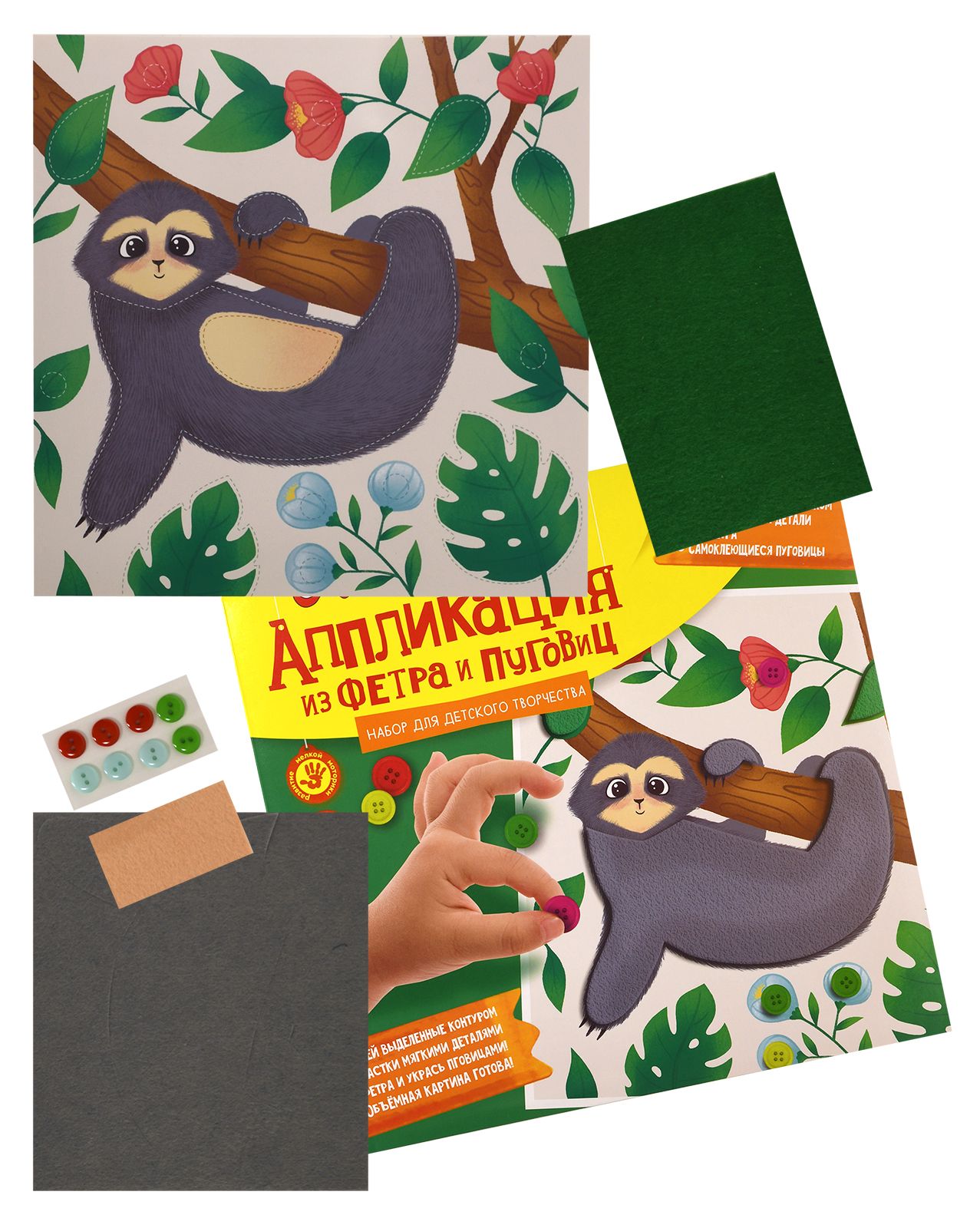 Вид материала для творчества: Аппликация Материал: пуговицы Мин. партия и варианты упаковок: 1 / 100 Аппликация из фетра и пуговиц Каляка-Маляка ВЕСЕЛЫЙ ЛЕНИВЕЦ 20х20 см 3+