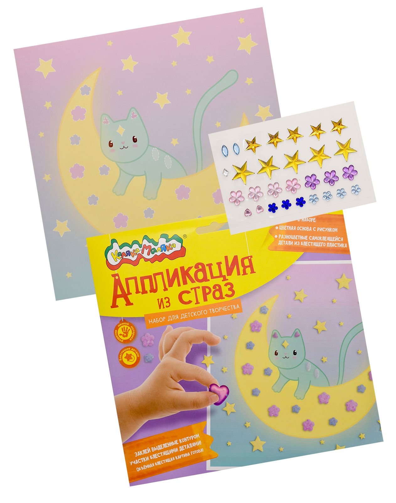 Вид материала для творчества: Аппликация Мин. партия и варианты упаковок: 1 / 100 Аппликация из страз Каляка-Маляка КОТИК 20х20 см 3+