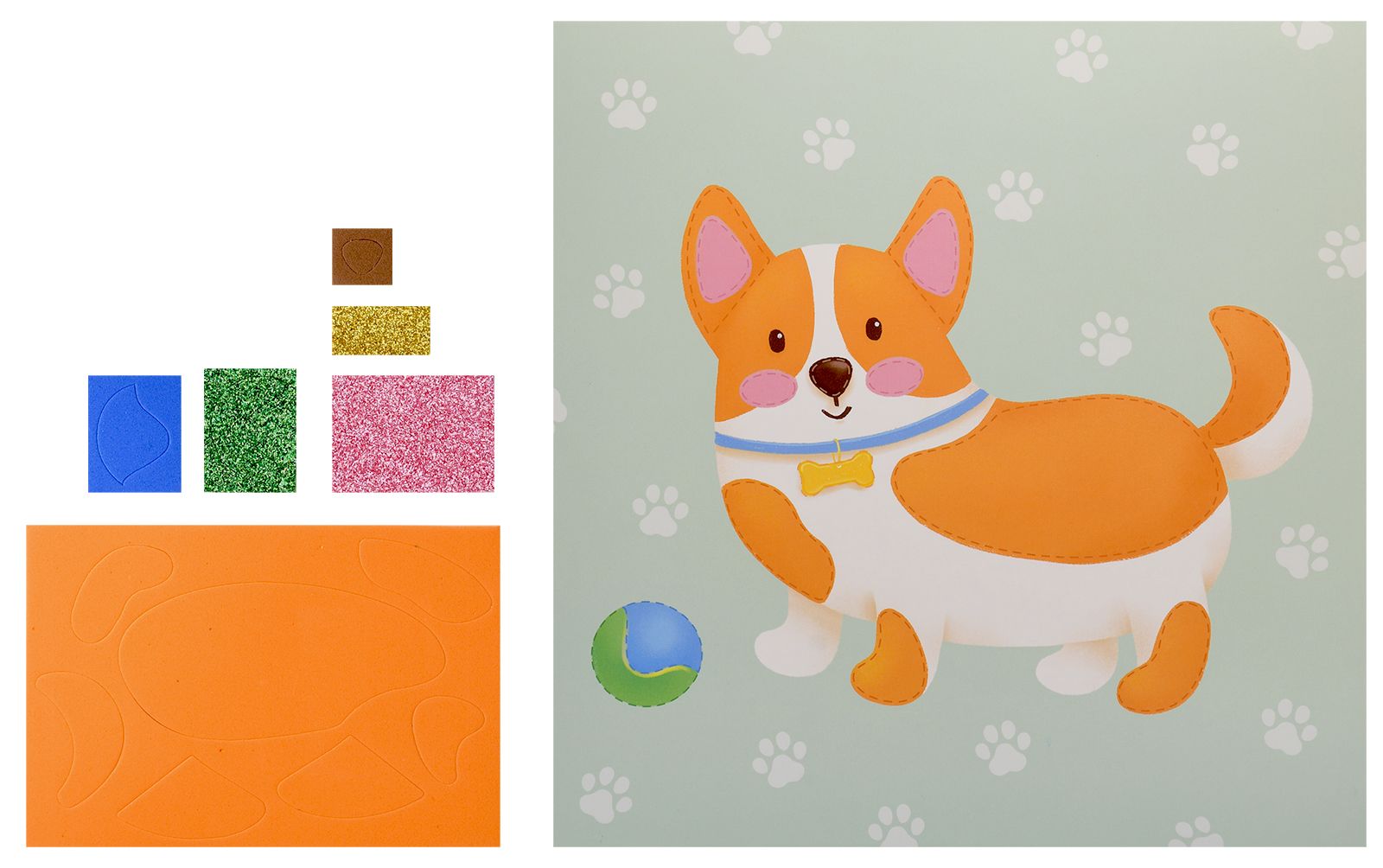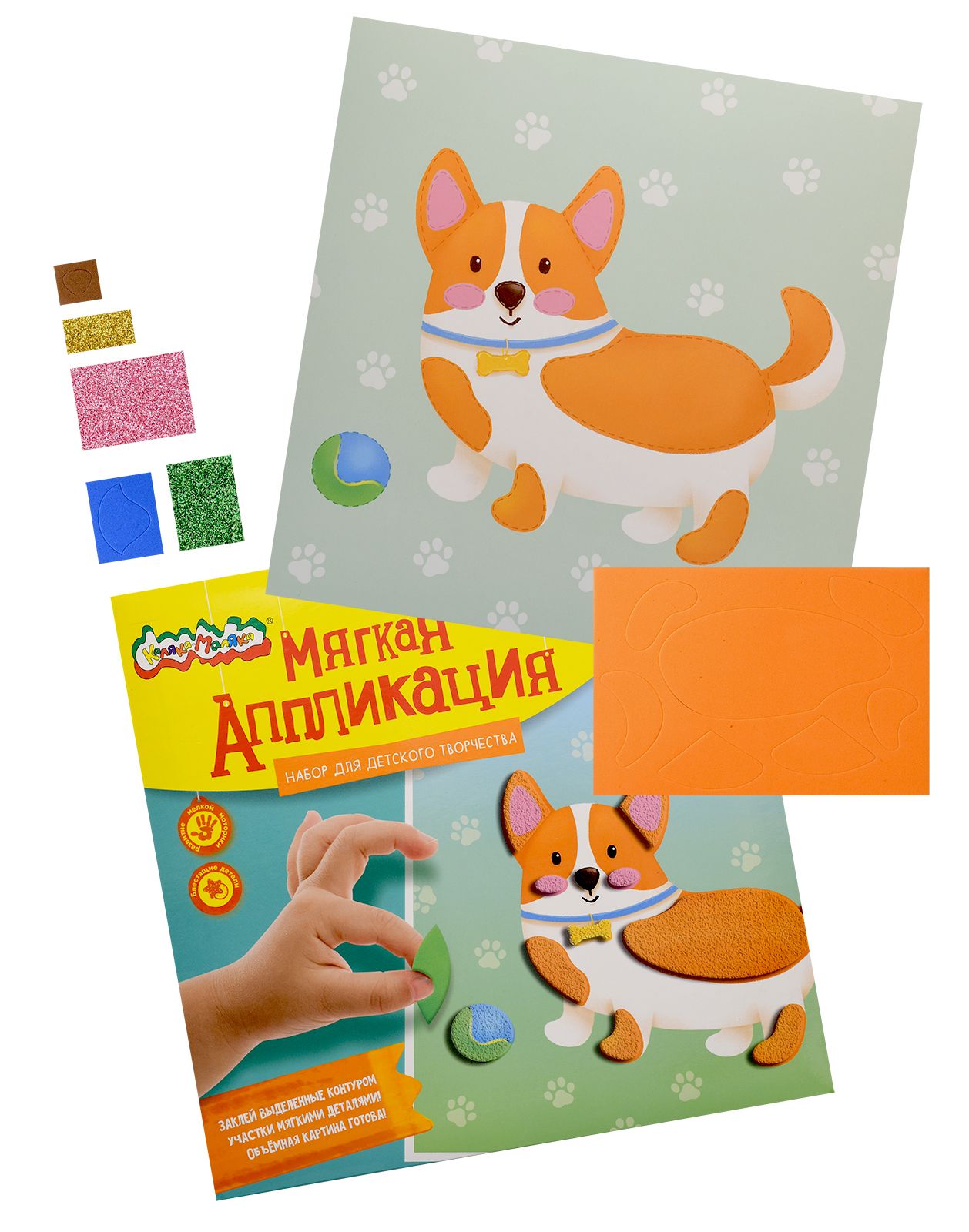 Вид материала для творчества: Аппликация Мин. партия и варианты упаковок: 1 / 100 Аппликация мягкая ЭВА Каляка-Маляка КОРГИ 20х20 см 3+