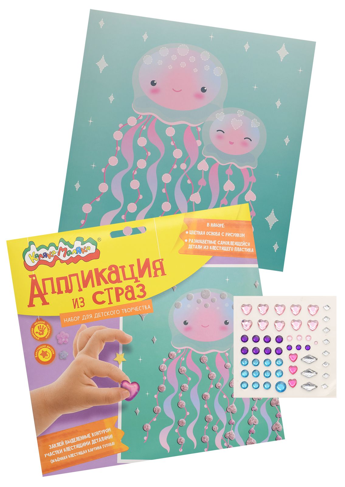 Вид материала для творчества: Аппликация Мин. партия и варианты упаковок: 1 / 100 Аппликация из страз Каляка-Маляка МЕДУЗЫ 20х20 см 3+