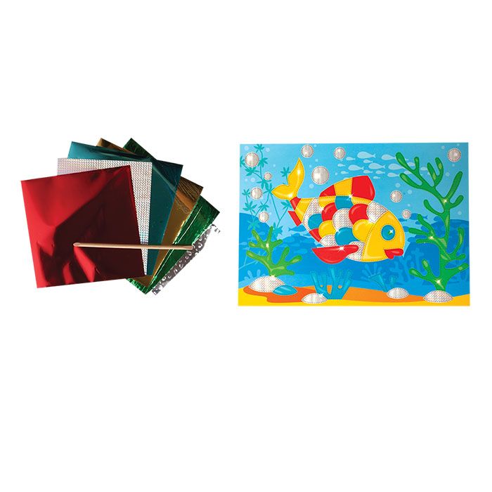 Вид материала для творчества: Набор для творчества Мин. партия и варианты упаковок: 1 / 25 / 50 Набор для творчества аппликация фольгой РЫБКА, 6 цветов фольги