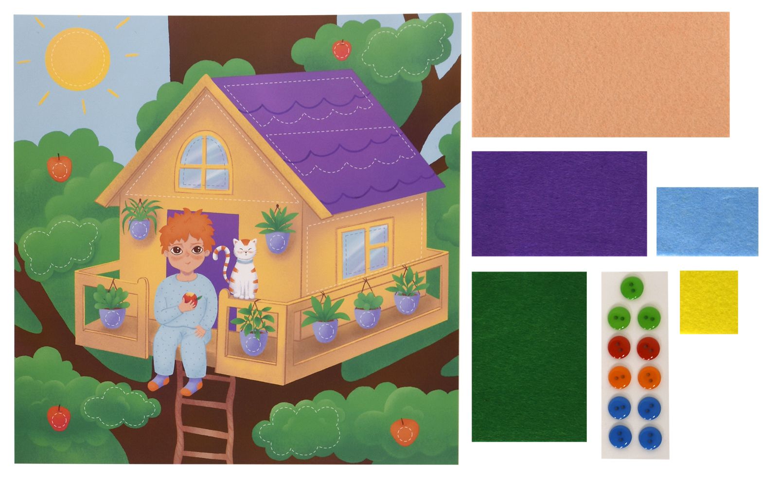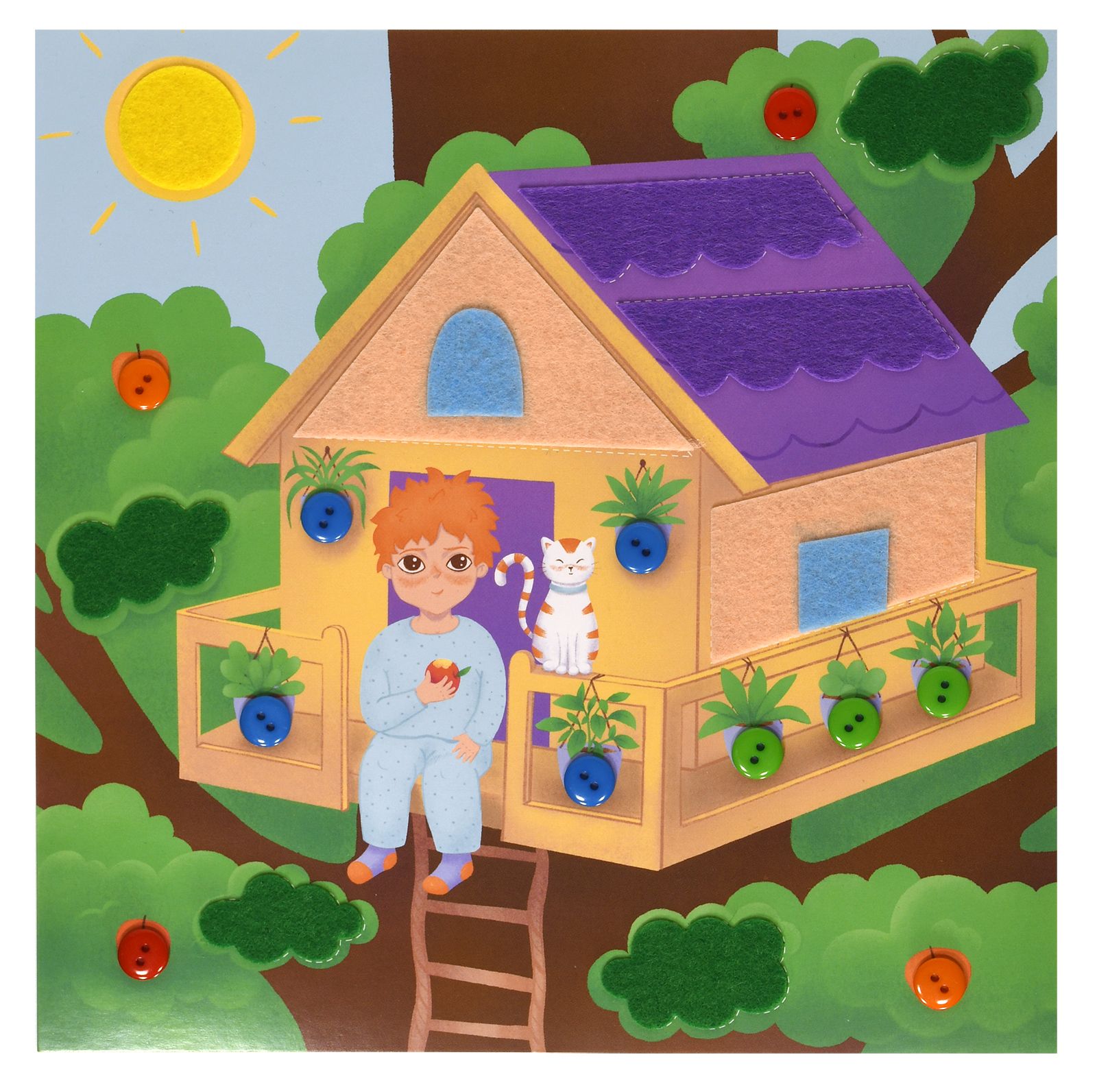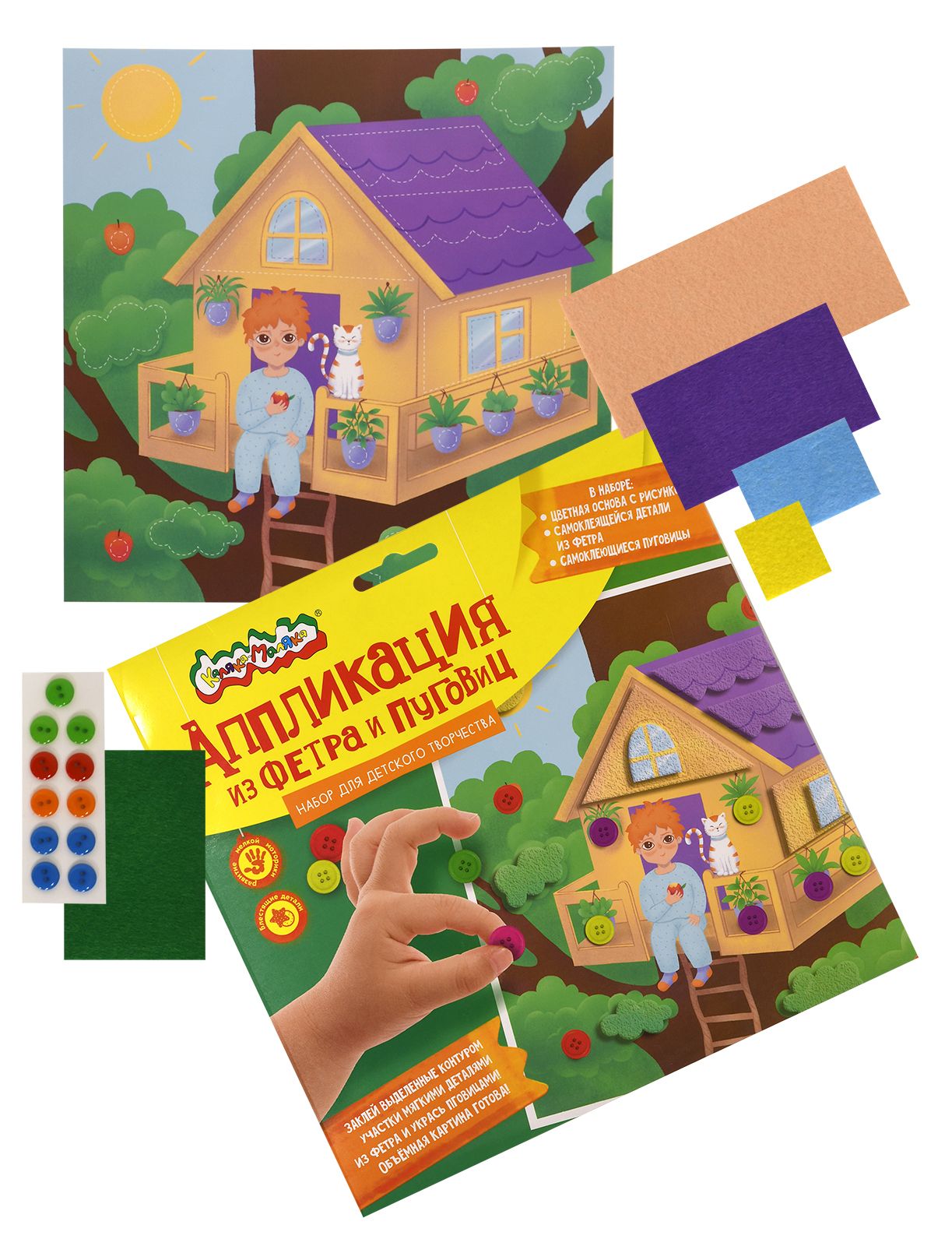 Вид материала для творчества: Аппликация Материал: пуговицы Мин. партия и варианты упаковок: 1 / 100 Аппликация из фетра и пуговиц Каляка-Маляка ДОМИК НА ДЕРЕВЕ 20х20 см 3+