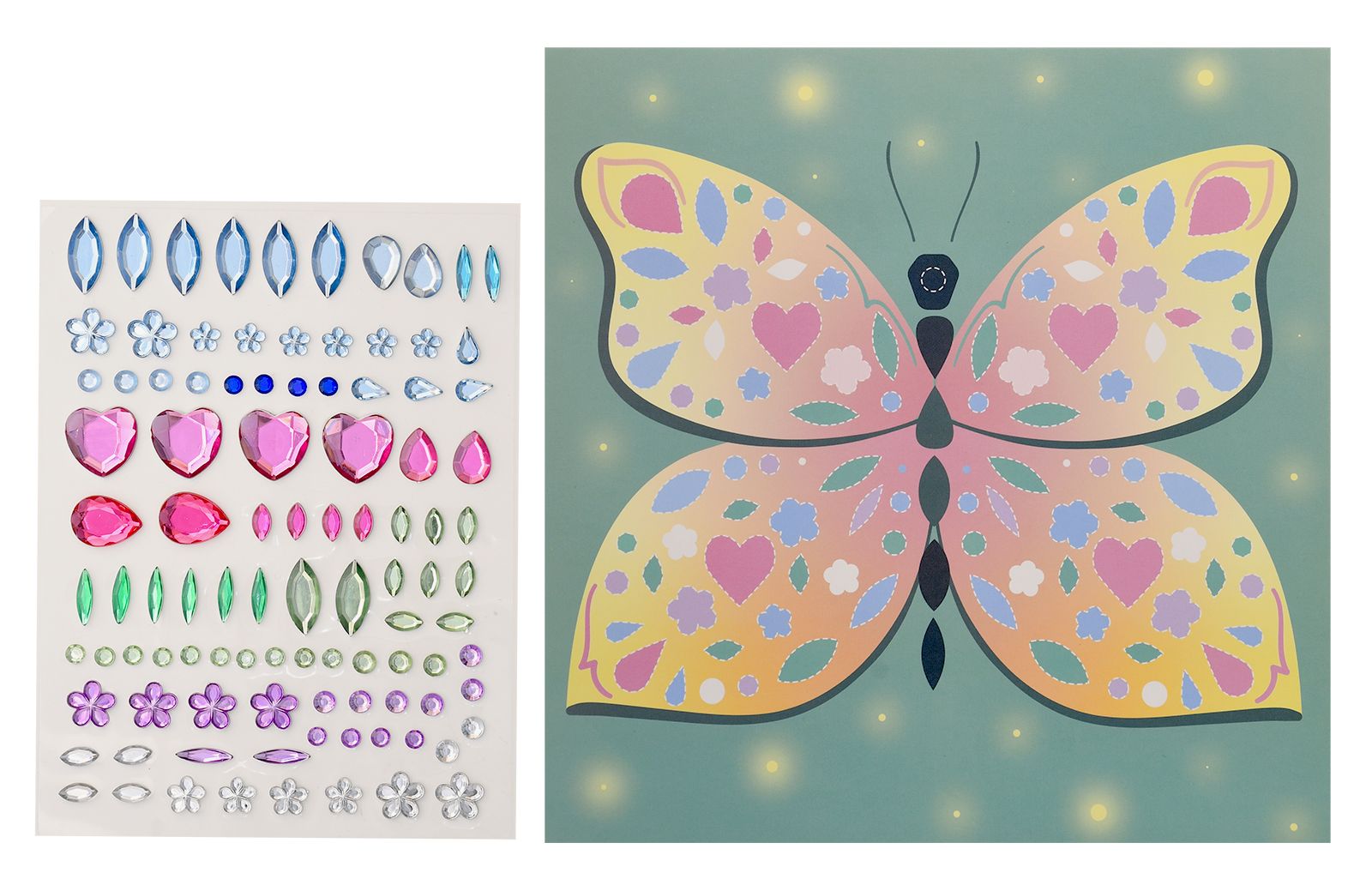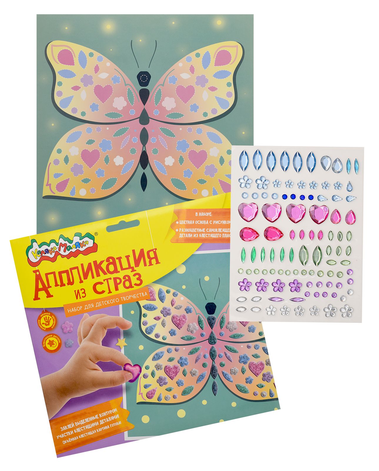 Вид материала для творчества: Аппликация Мин. партия и варианты упаковок: 1 / 100 Аппликация из страз Каляка-Маляка БАБОЧКА 20х20 см 3+