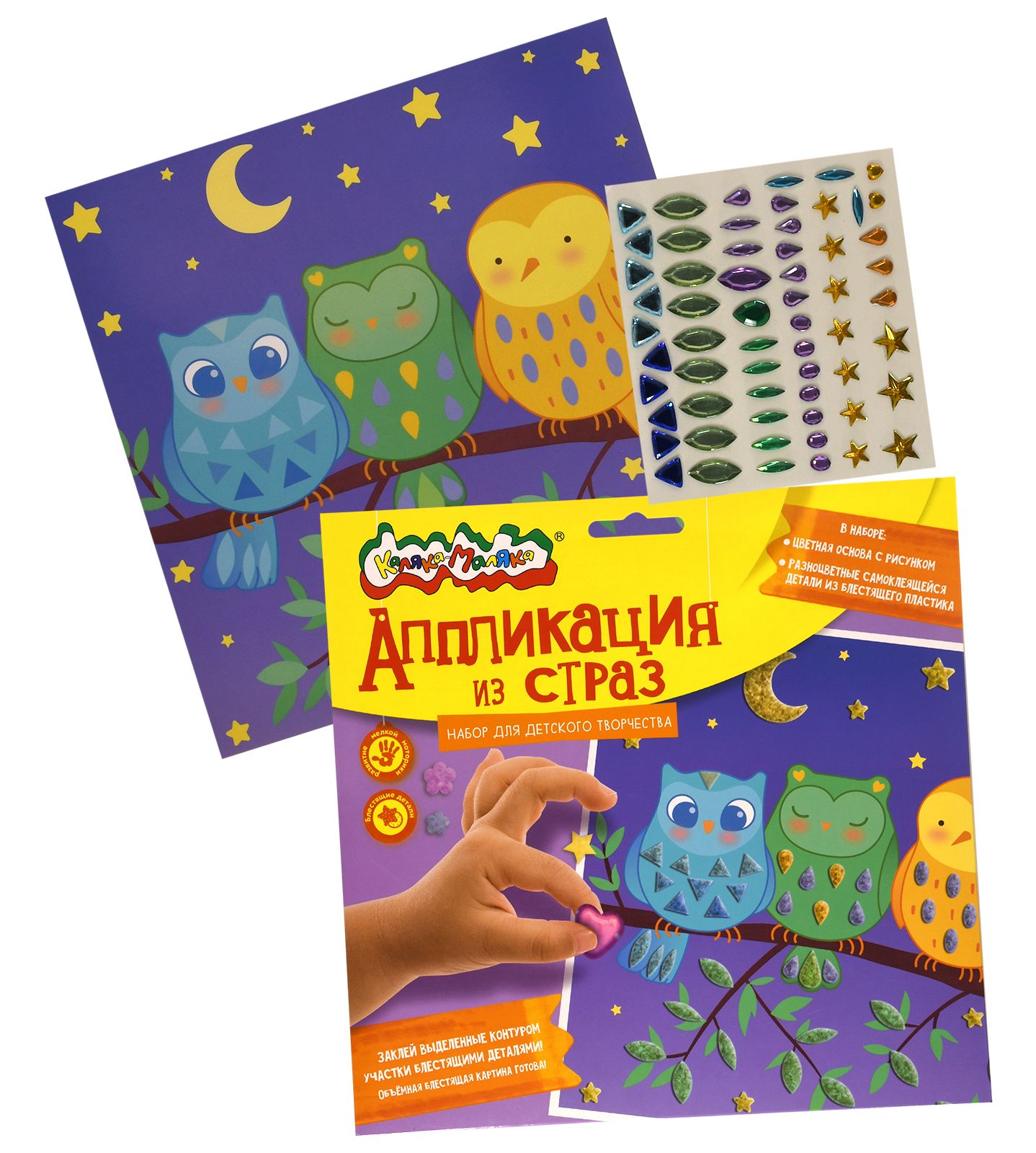 Вид материала для творчества: Аппликация Мин. партия и варианты упаковок: 1 / 100 Аппликация из страз Каляка-Маляка СОВЫ 20х20 см 3+