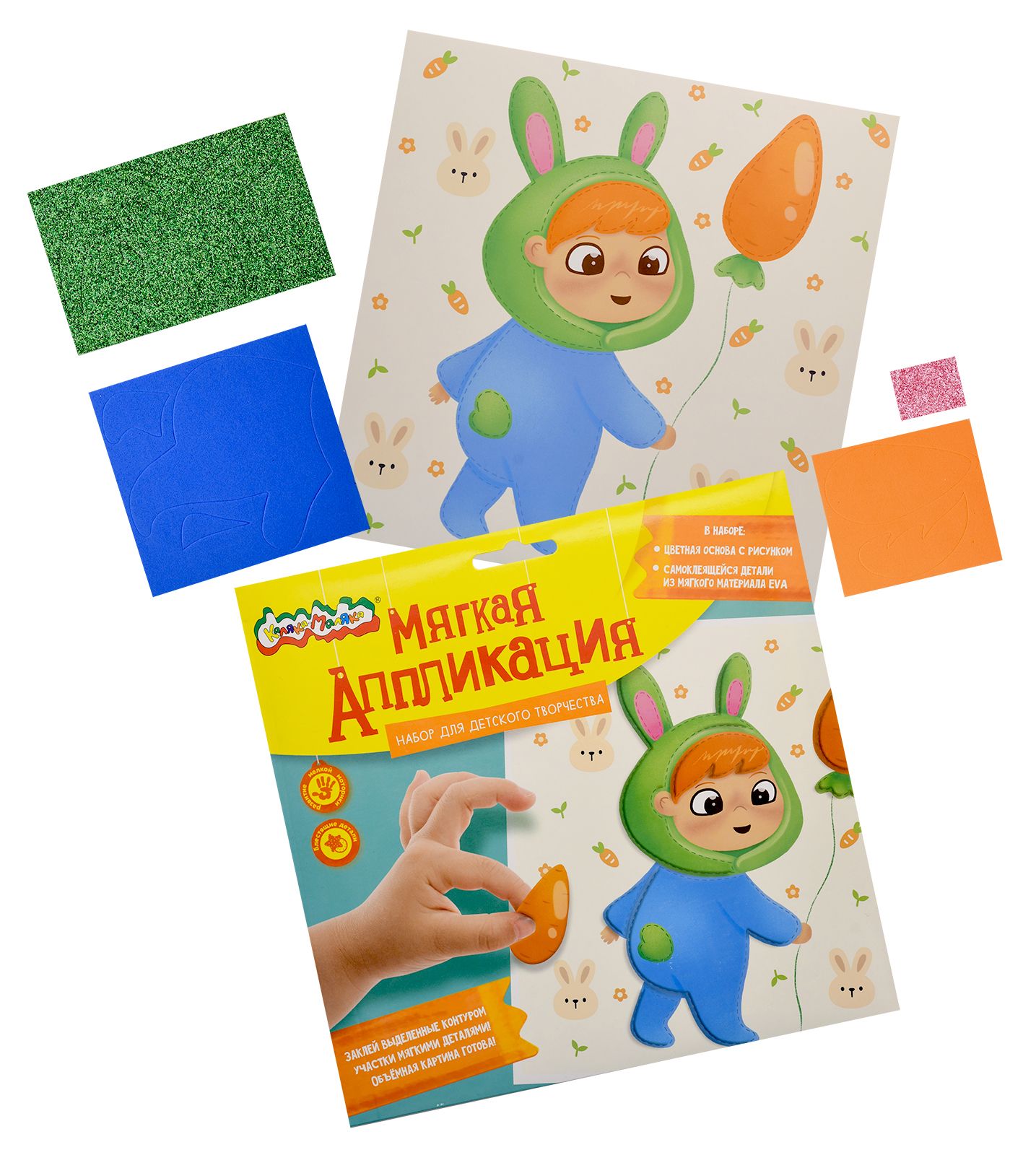 Вид материала для творчества: Аппликация Мин. партия и варианты упаковок: 1 / 100 Аппликация мягкая ЭВА Каляка-Маляка МАЛЫШ 20х20 см 3+