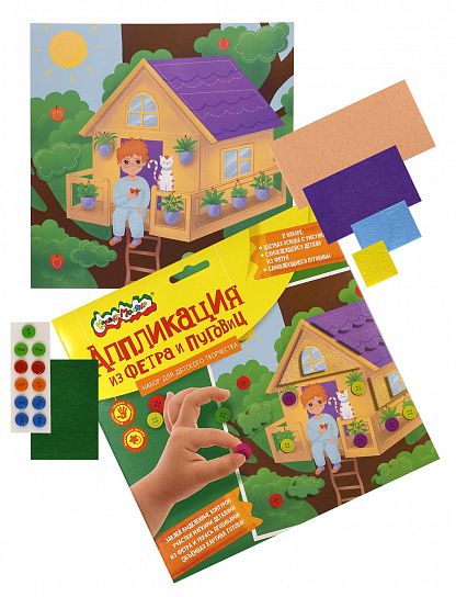 Набор для творчества аппликация из фетра и пуговиц Каляка-Маляка "ДОМИК НА ДЕРЕВЕ" — это отличный выбор, который позволяет ребенку провести свободное время с пользой. Кропотливая работа с мелкими деталями тренирует мелкую моторику, прививает усидчивость и аккуратность. Красочная яркая картинка воспитывает хороший художественный вкус и воображение.
