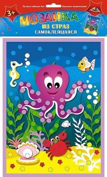 Набор для детского творчества "Мозаика из страз". На цветной картонной основе цветом и контуром показаны места, куда необходимо приклеить элементы мозаики. Элементы из геля разного цвета и формы имеют клеевой слой, поэтому вы обойдетесь без клея и ножниц. В результате получится яркая картинка. Набор включает цветную картонную основу размером 19,5 х 26,5 см, цветные элементы мозаики из геля, размер элементов 8 мм, поэтому приклеивать их могут дети от 3-х лет. Занятия с помощью этого набора развивают мелкую моторику, внимание, аккуратность. Все необходимые детали для поделки входят в состав набора.