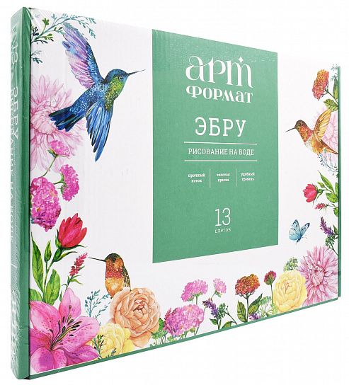 Количество цветов: 13 Упаковка: коробка с амбалажем из микрогофрокартона Торговая марка: АРТформат Комплектация набора: лоток А4 - 1шт; акриловые краски - 13шт х 15мл; загуститель - 4шт; 20 листов А4; гребень вертикальный пластиковый - 1шт; шпажки деревянные - 3шт; кисть - 1 шт; скатерть полиэтиленовая - 1шт Наличие золотой краски: Да Наличие лотка: лоток А4 Мин. партия и варианты упаковок: 1 / 36 Набор для рисования на воде ЭБРУ АРТформат 15 мл 13 цв., лоток А4, с золотой краской, коробка с амбалажем из микрогфркартона