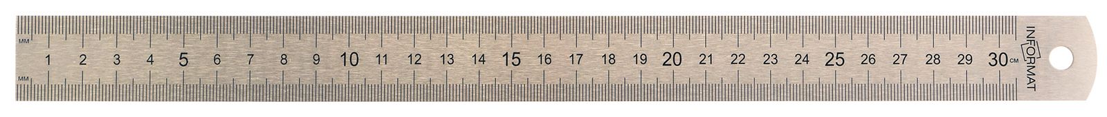 Цвет: металлический Наличие европодвеса: Да Вид чертежных принадлежностей: Линейка Материал: металл Индивидуальная упаковка: Да Прозрачность материала: непрозрачный Мин. партия и варианты упаковок: 1 / 12 / 300 Линейка INFORMAT 30 см металлическая в чехле ПВХ, с европодвесом