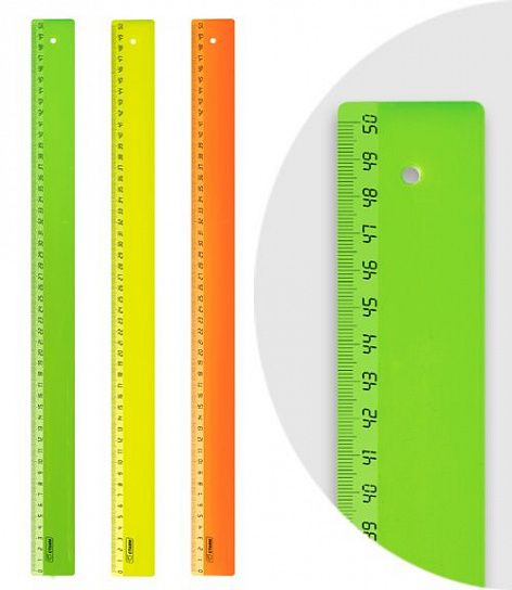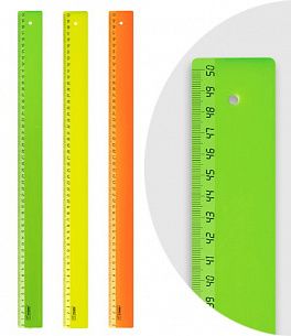 Линейка из высококачественного пластика с двухсторонней шкалой. Ассорти из 4 ярких прозрачных неоновых цветов в коробке дисплее (розовый, оранжевый, желтый, зеленый). Точная миллиметровая шкала, длина разметки составляет 15 см. Перейти в карточку товара