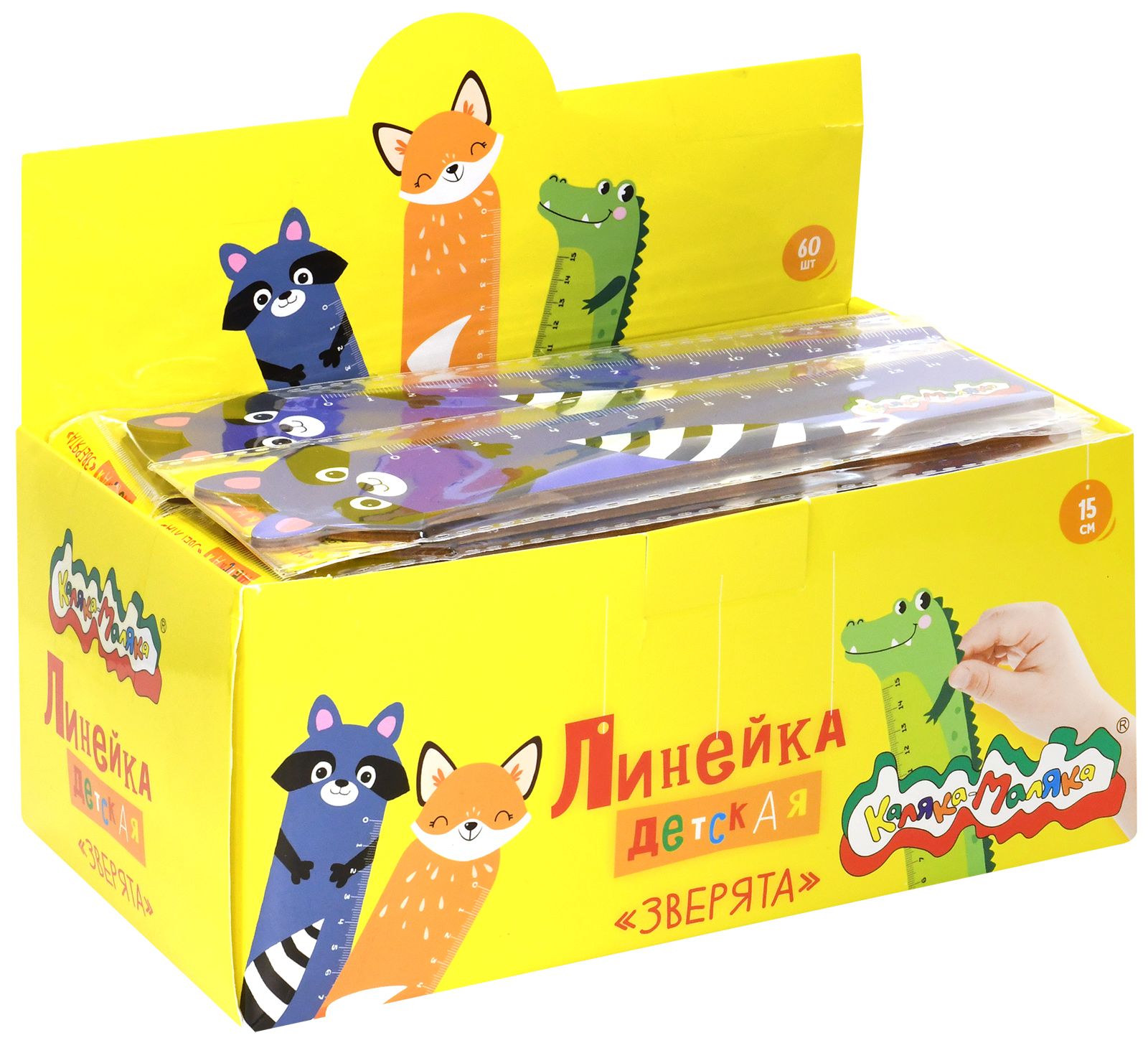 Цвет: ассорти Наличие европодвеса: Да Вид чертежных принадлежностей: Линейка Тип линейки: фигурная Материал: дерево Индивидуальная упаковка: Да Мин. партия и варианты упаковок: 1 / 60 / 1200 Линейка Каляка-Маляка ЗВЕРЯТА фигурная 15 см деревянная, ассорти, с европодвесом