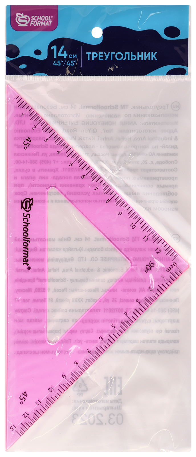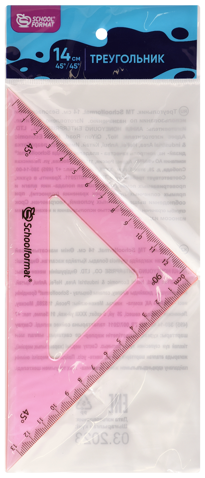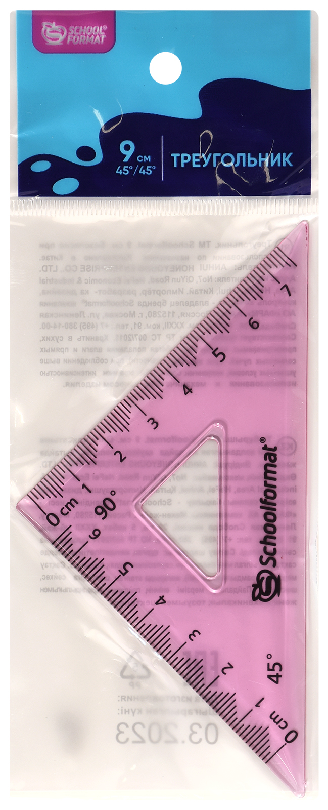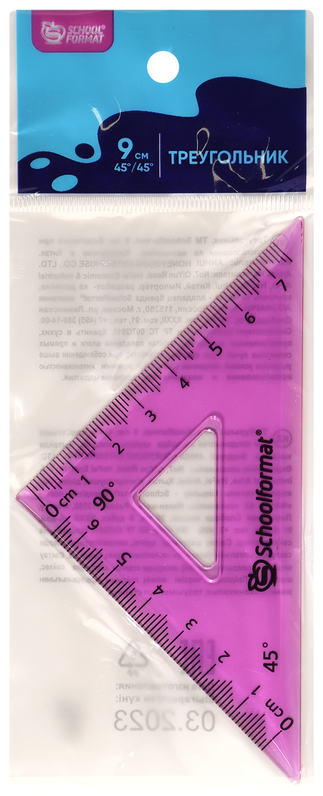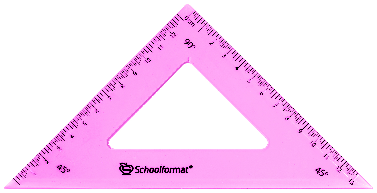 Цвет: ассорти Наличие европодвеса: Да Вид чертежных принадлежностей: Треугольник Градусы: 45 Материал: пластик Прозрачность материала: тонированный Мин. партия и варианты упаковок: 1 / 48 / 864 -