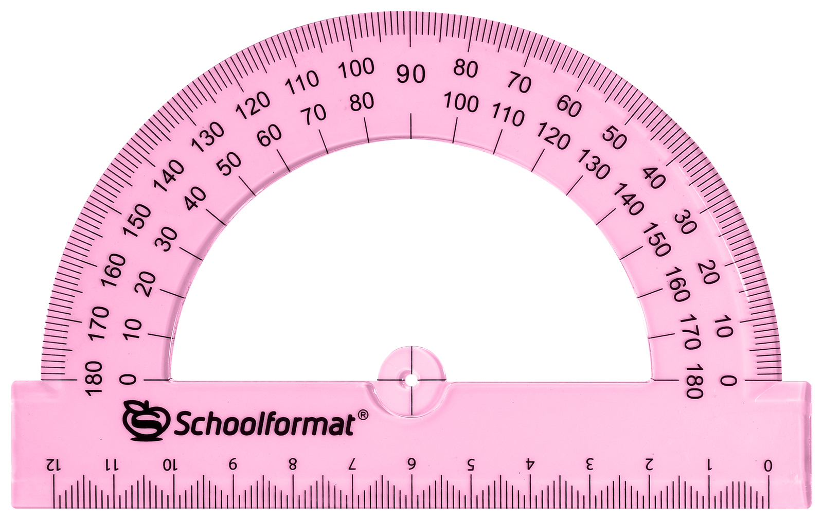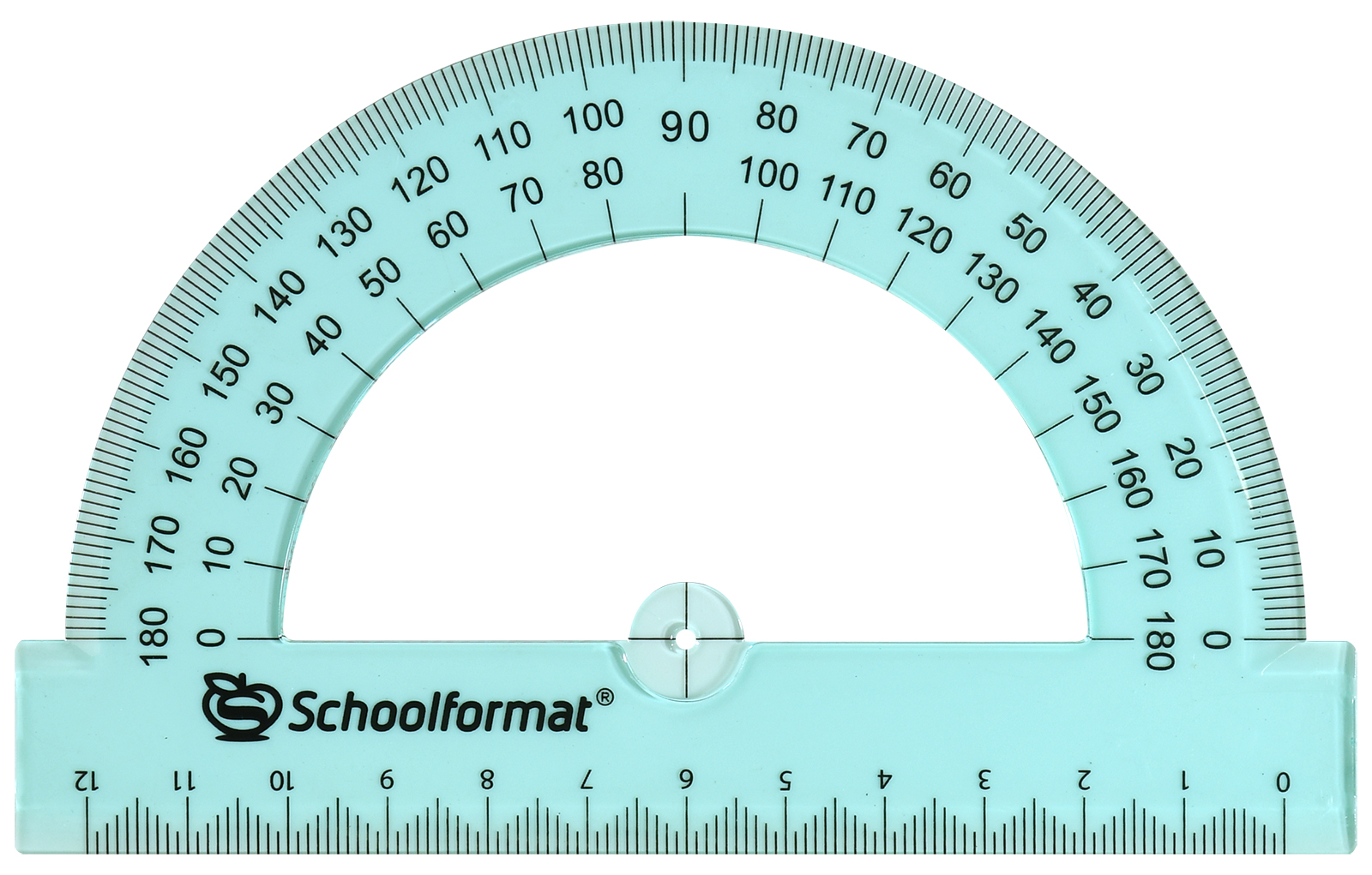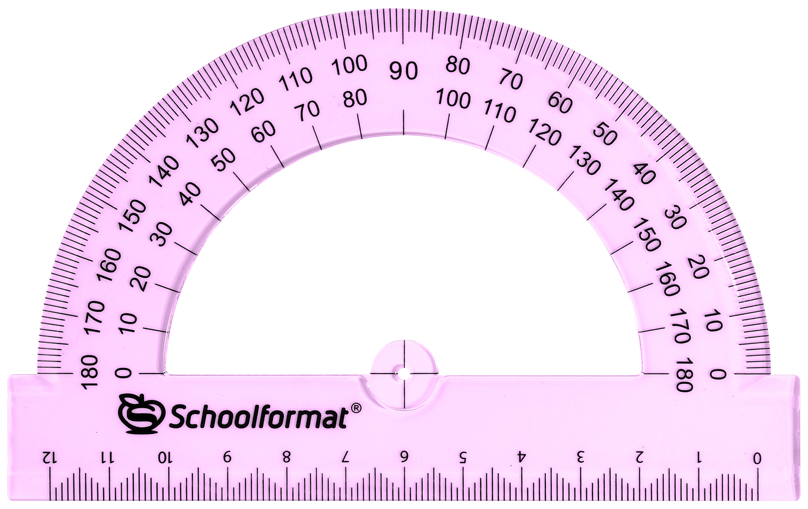 - транспортир применяется для черчения, построения и измерения углов (говорят, что придумали его еще вавилоняне). Состоит из линейки и полукруга, разделенного на 180°. В некоторых устройствах проделывают отверстие для карандаша, позволяющее точно находить центр окружности и вычерчивать ее. Существуют также универсальные линейки, снабженные шкалой с делениями, кратными единице измерения длины;