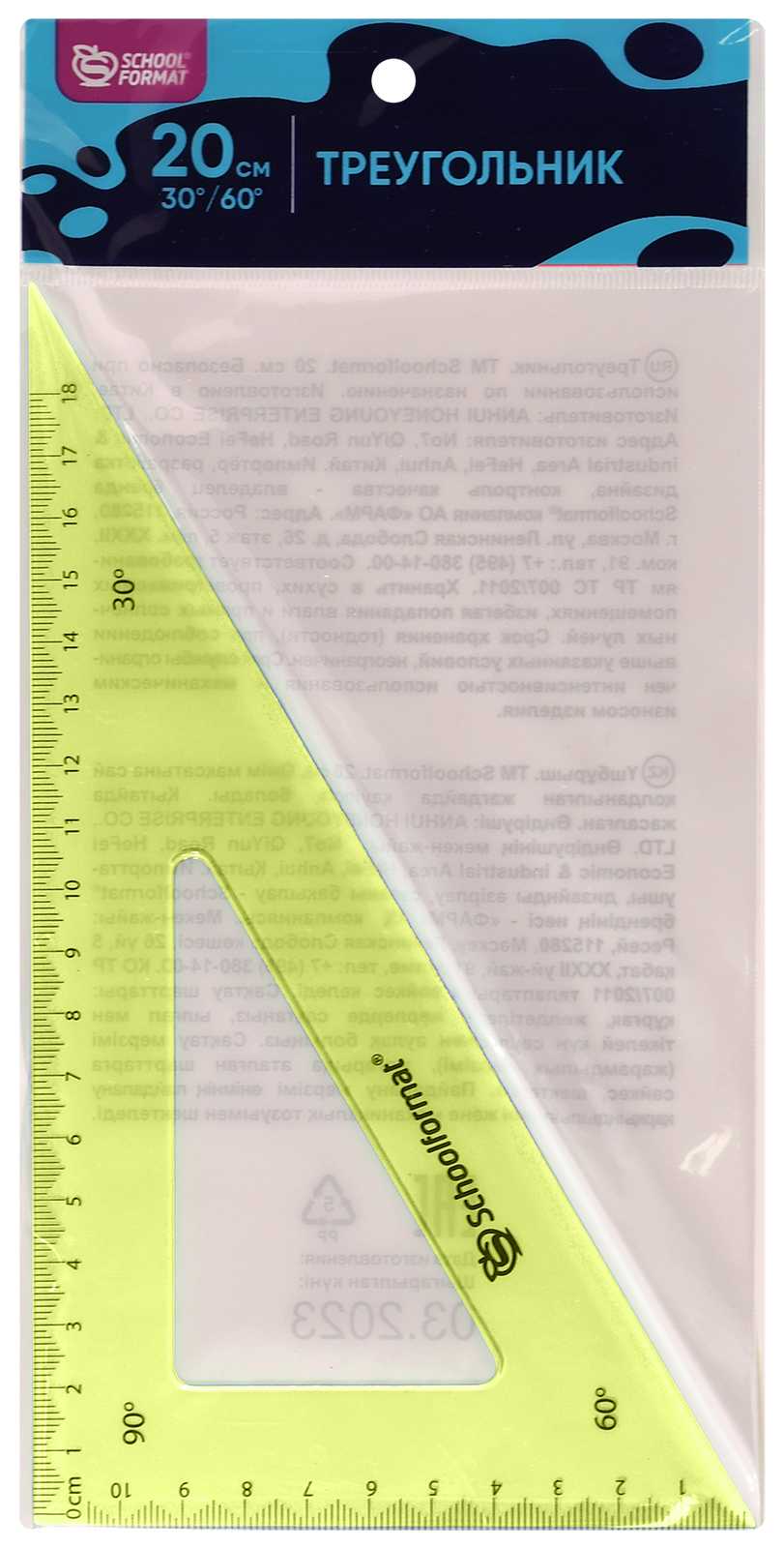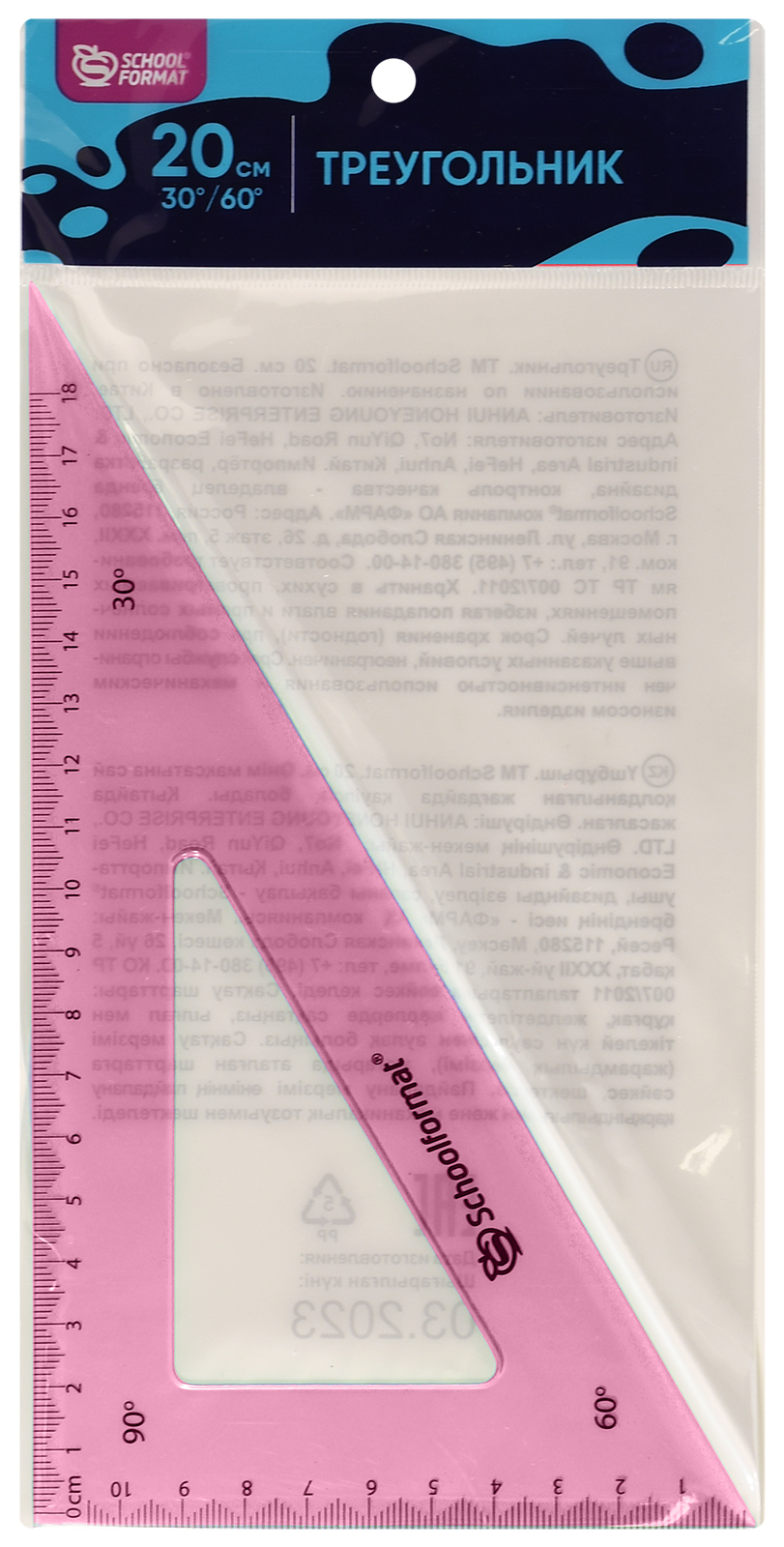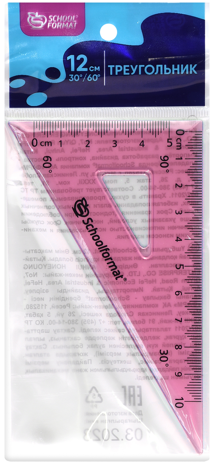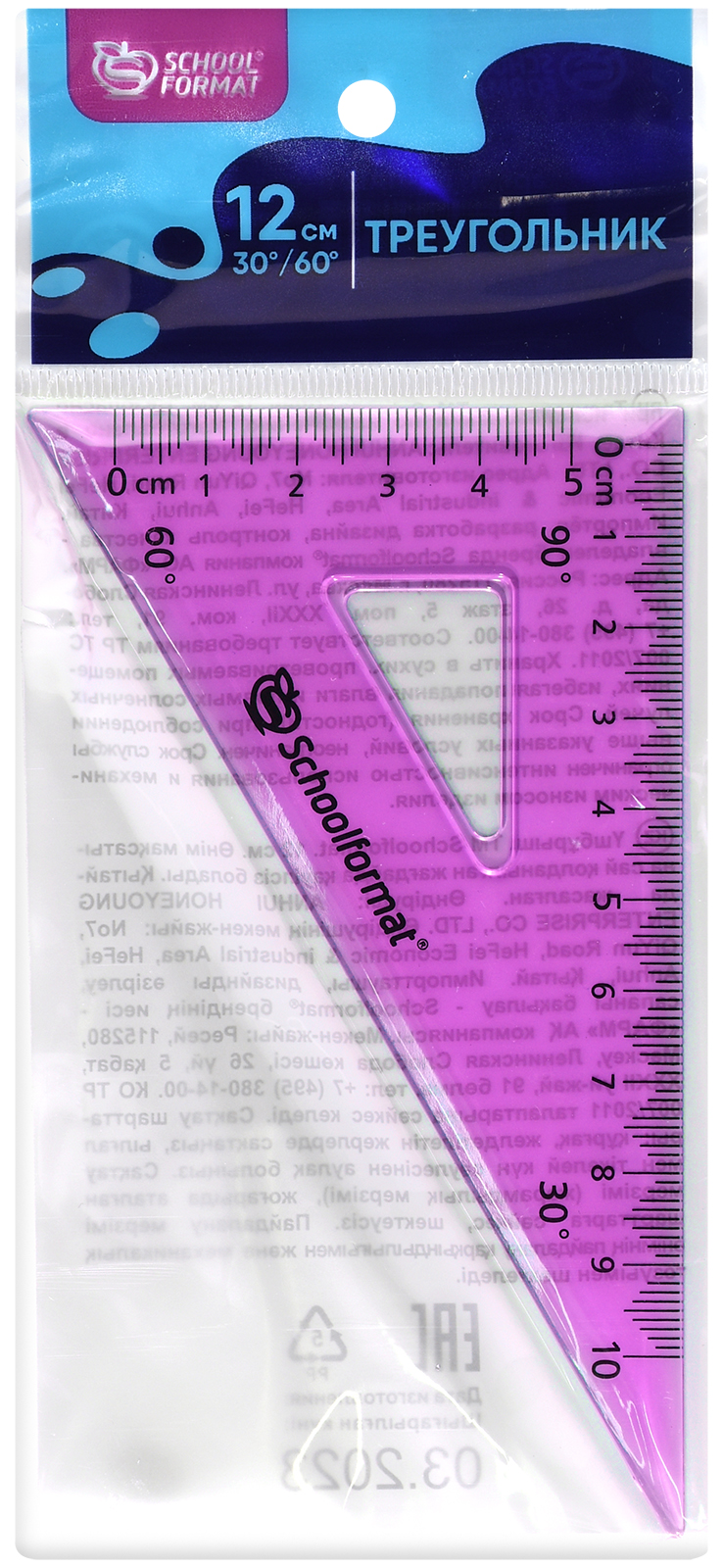Цвет: бесцветный Наличие европодвеса: Да Вид чертежных принадлежностей: Треугольник Градусы: 60 Материал: пластик Прозрачность материала: прозрачный Мин. партия и варианты упаковок: 1 / 50 -