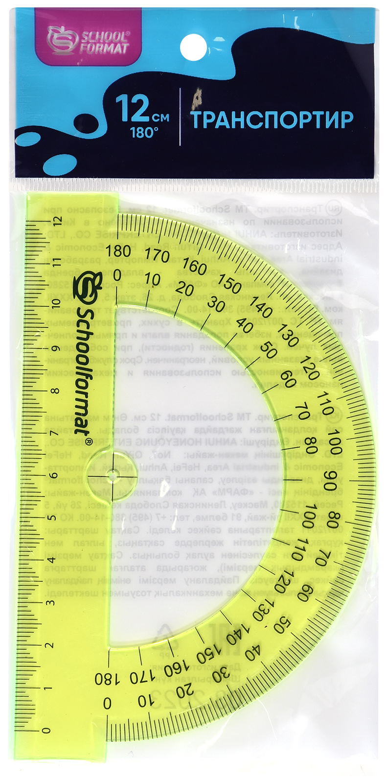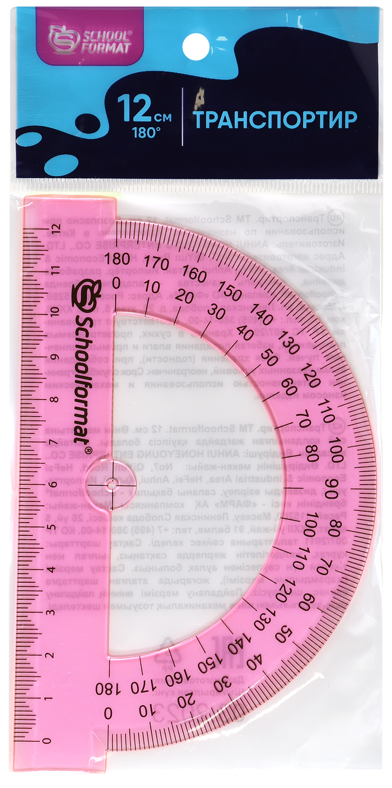 Цвет: ассорти Наличие европодвеса: Да Вид чертежных принадлежностей: Транспортир Материал: пластик Прозрачность материала: тонированный Торговая марка: Schoolformat Мин. партия и варианты упаковок: 1 / 48 / 960 -