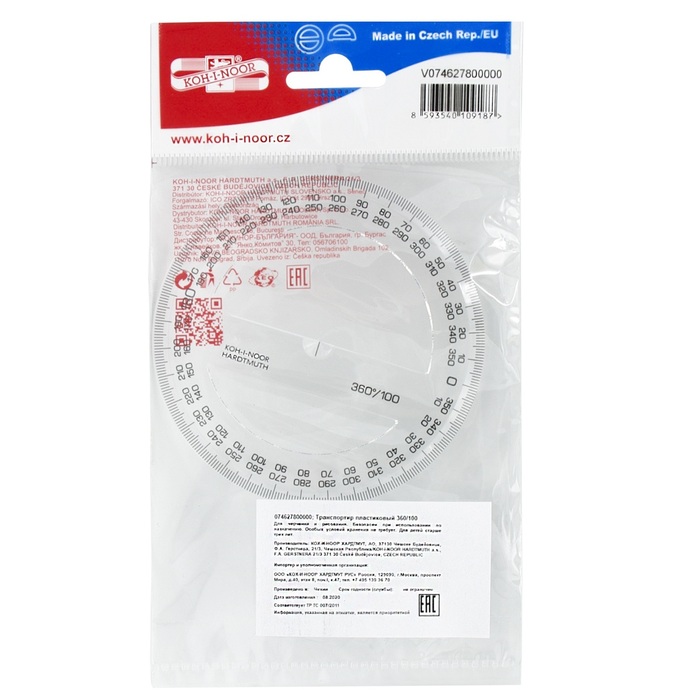 Цвет: бесцветный Наличие европодвеса: Да Вид чертежных принадлежностей: Транспортир Материал: пластик Прозрачность материала: прозрачный Торговая марка: Koh-I-Noor Мин. партия и варианты упаковок: 1 / 50 -