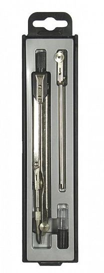 Цвет: черный Наличие европодвеса: Да Упаковка: пластиковый пенал Количество предметов: 3 Вид чертежных принадлежностей: Набор чертежный (готовальня) Материал: металл Мин. партия и варианты упаковок: 1 / 64 -