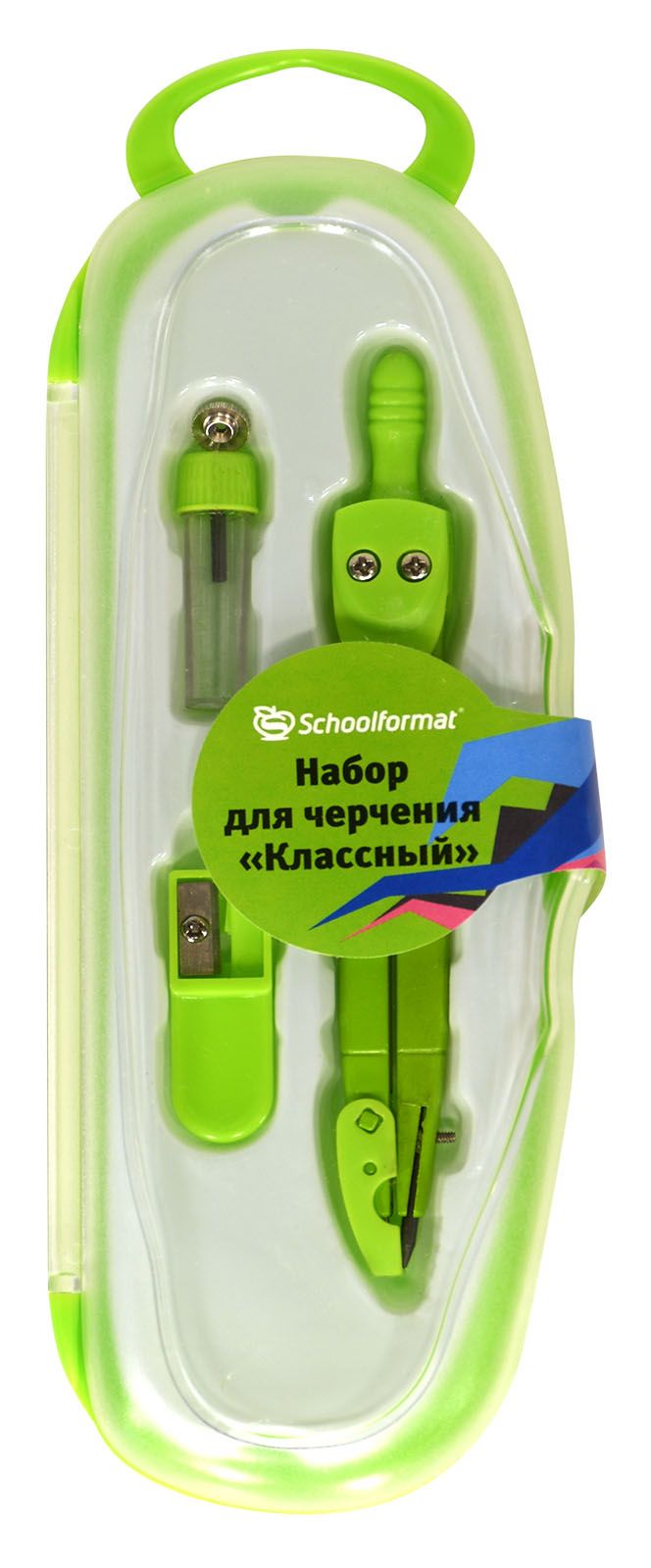 Цвет: ассорти Наличие европодвеса: Да Упаковка: пластиковый пенал Количество предметов: 3 Вид чертежных принадлежностей: Набор чертежный (готовальня) Материал: металл Мин. партия и варианты упаковок: 1 / 12 / 144 Набор чертежный (готовальня) Schoolformat КЛАССНЫЙ циркуль 135 мм металлический ассорти, 3 предмета, защит. колпачок, в пластиковом пенале с