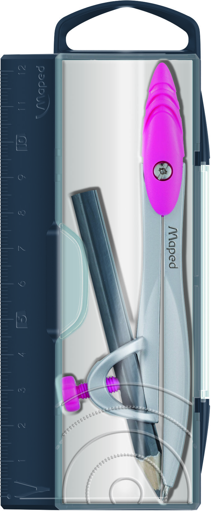 Наличие европодвеса: Нет Упаковка: пластиковый чехол Вид чертежных принадлежностей: Циркуль Материал: металл Безопасная игла: Нет Защитный колпачок для иглы: Нет Мин. партия и варианты упаковок: 1 / 20 / 240 Циркуль MAPED STUDY из цинкового сплава, с эргономичной головкой, с грифелем, в пластиковом футляре, в комплекте пенал с доп грифелем, сереб