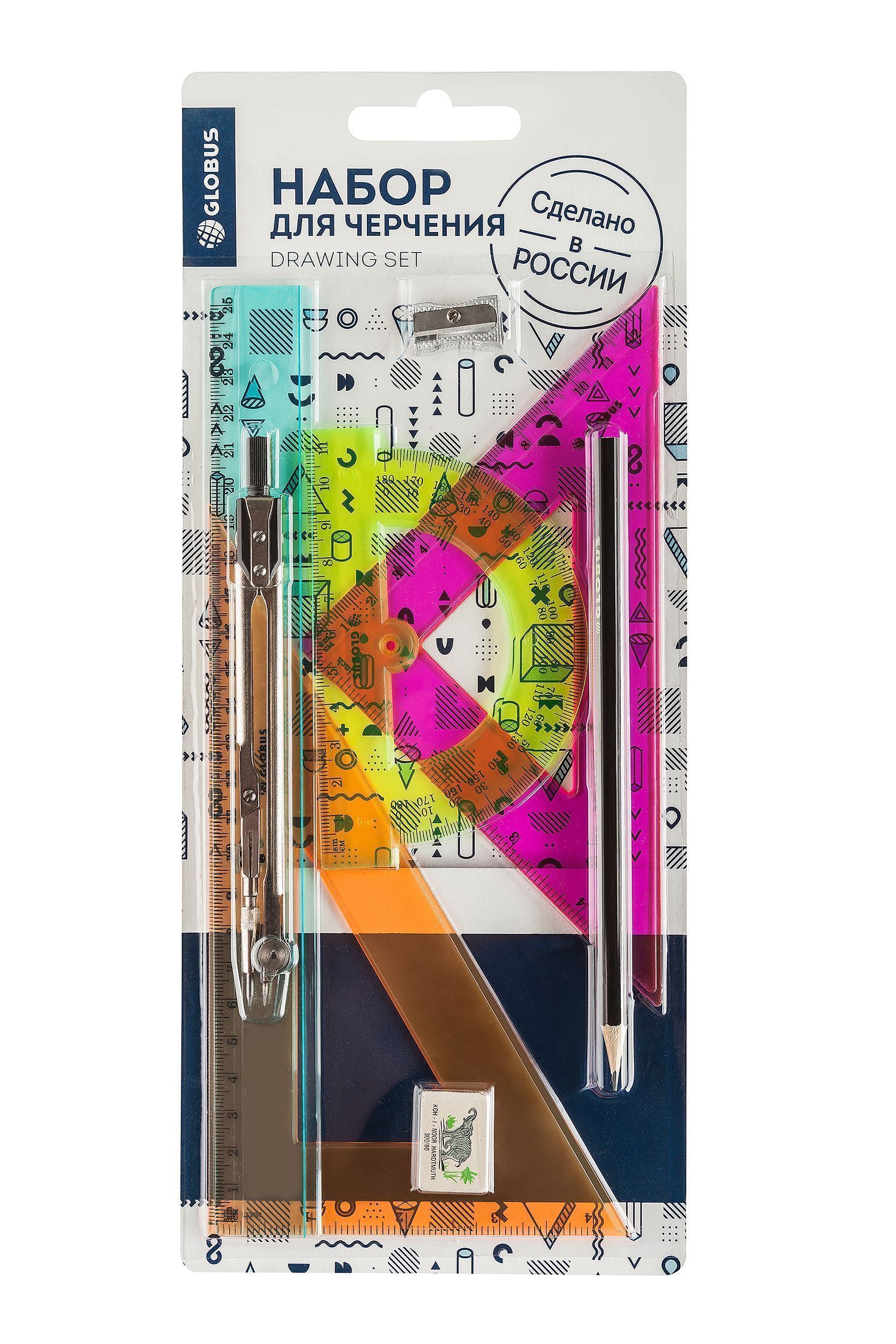 Набор чертежный (готовальня) GLOBUS SCHOOL циркуль 155 мм металлический черный, 8 предметов, в блистере с европодвесом