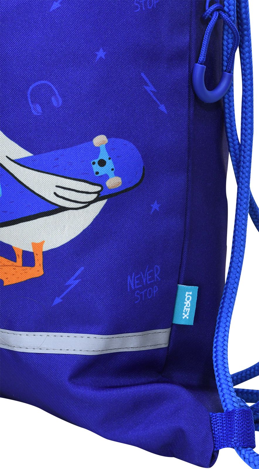 Цвет: синий Размер: 42x34 см Материал: полиэстер Вид изделия: Мешок для обуви Количество секций: 1 отделение Пол ребенка: универсальный Мин. партия и варианты упаковок: 1 / 100 Мешок для обуви LOREX KIDS SKATE GOOSE 42x34 см, синий, 1 отделение, с большим карманом на молнии, с ручкой универсальный