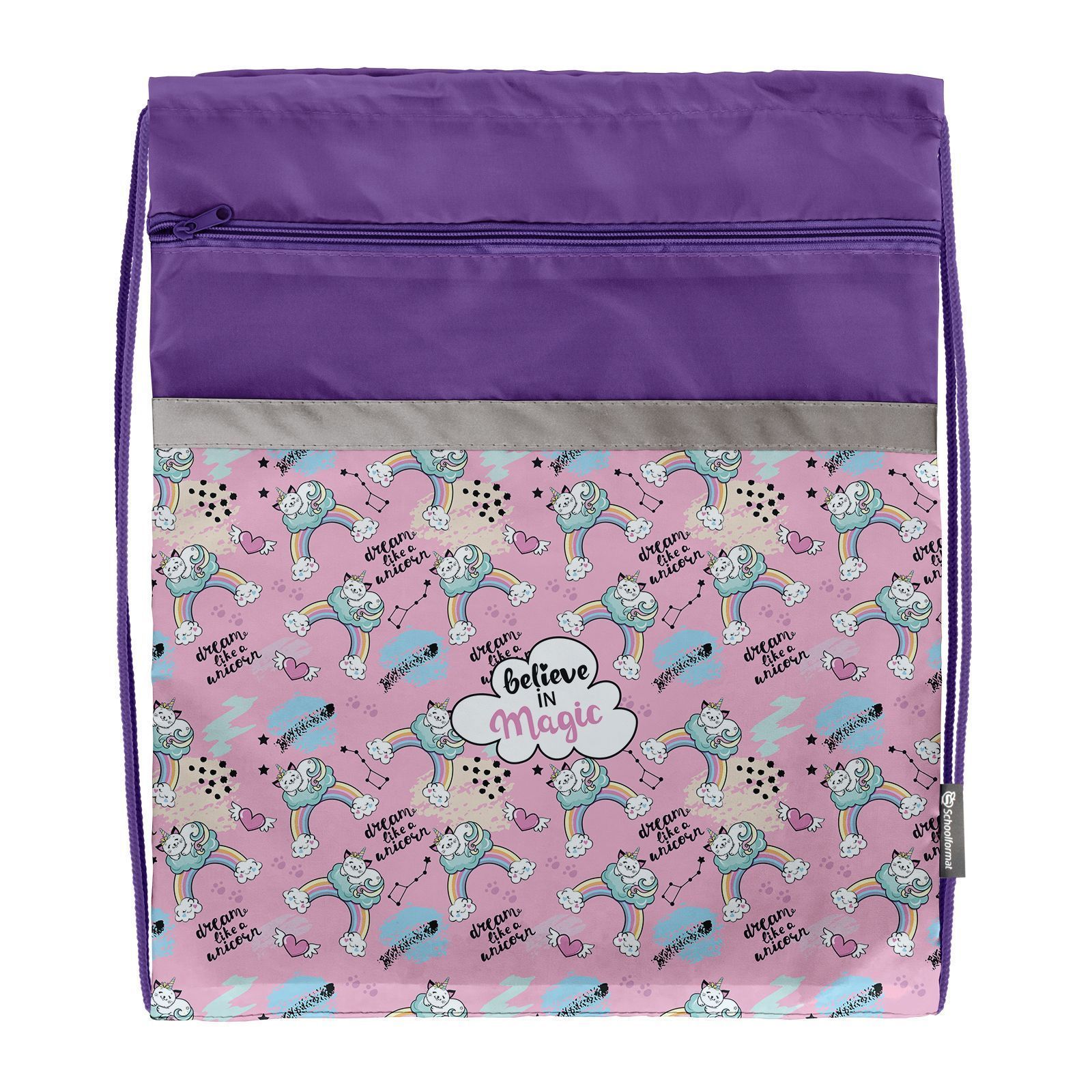 Для безопасности детей в темное время суток, на каждом мешке есть светоотражающая лента, находящаяся сверху. Правильное расположение очень важно: если лента находится снизу, то сминается при наполнении мешка и становится незаметной, чего не происходит с мешками Schoolformat.