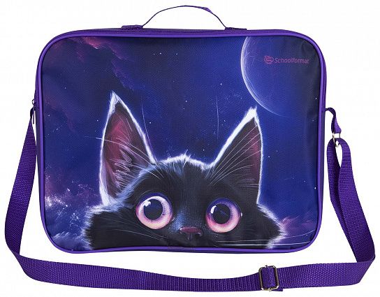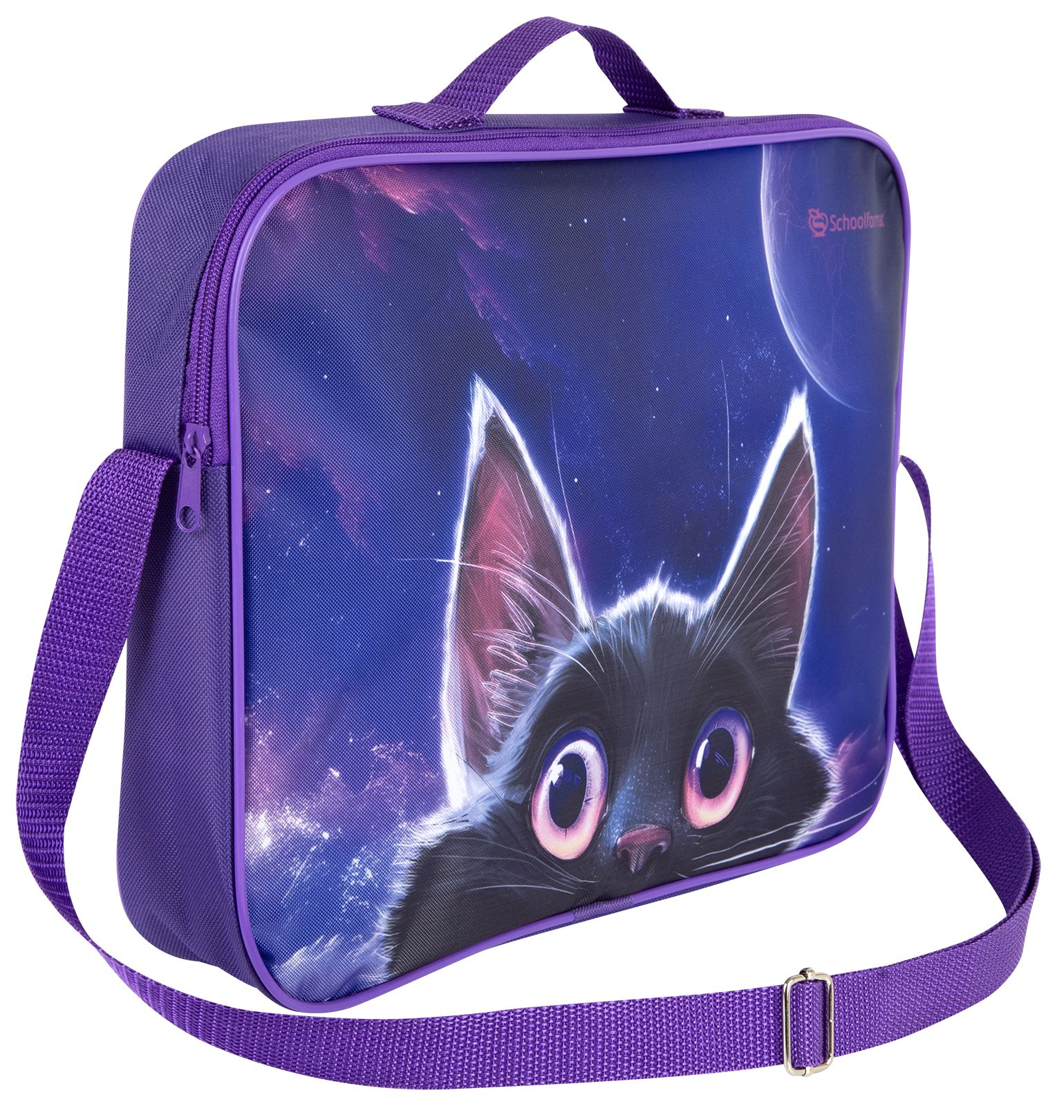 Папка для труда с 2 ручками А4 широкая Schoolformat ИГРИВЫЙ КОСМОКОТИК фиолетовая, полиэстер, молния сверху, регул. плечевой ремень