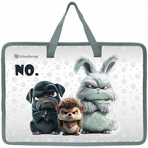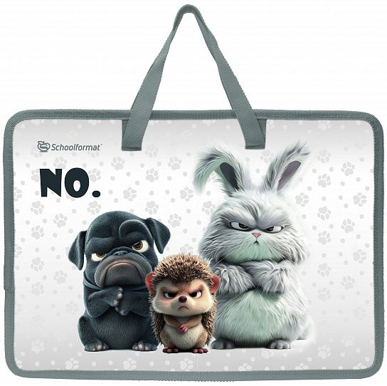 Папка д/труда с 2 ручками А4 широкая Schoolformat ДУШНЫЕ ЗВЕРУШКИ 330х260х75 мм серый пластик, полиэстер молния сверху универс.