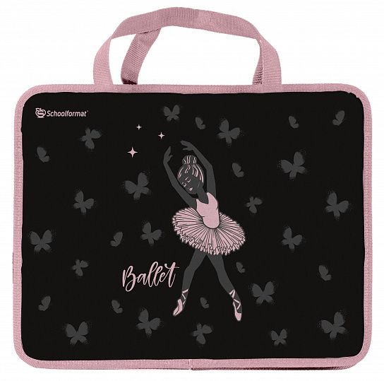 Папка для труда с 2 ручками А4 широкая Schoolformat БАЛЕРИНА черная, пластик, полиэстер, молния сверху, для девочек