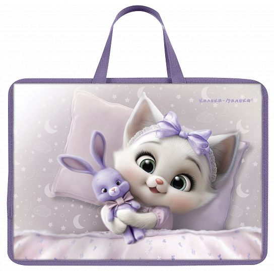 Папка д/труда с 2 ручками А4 широкая Каляка-Маляка МИЛАЯ КОШЕЧКА 330х260х75 мм сирен. пластик, полиэстер молния сверху д/девочек