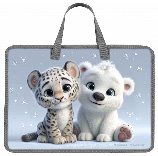 Папка д/труда с 2 ручками А4 широкая Каляка-Маляка СНЕЖНЫЙ БАРС И БЕЛЫЙ МИШКА 330х260х75 мм серый пластик, полиэстер молния сверху универ