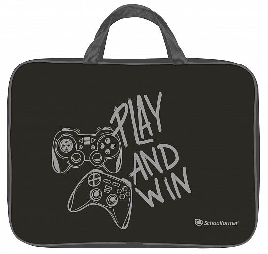 Папка для труда с 2 ручками А4 широкая Schoolformat ДЖОЙСТИК черная, полиэстер, молния сверху, для мальчиков