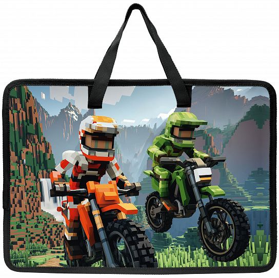 Папка д/труда с 2 ручками А4 широкая Schoolformat БАЙКРАФТ 330х260х75 мм разноцвет. пластик, полиэстер молния сверху д/мальчиков