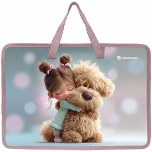 Папка д/труда с 2 ручками А4 широкая Schoolformat ДЕВОЧКА И ПИТОМЦЫ 330х260х75 мм мятный пластик, полиэстер молния сверху /девочек