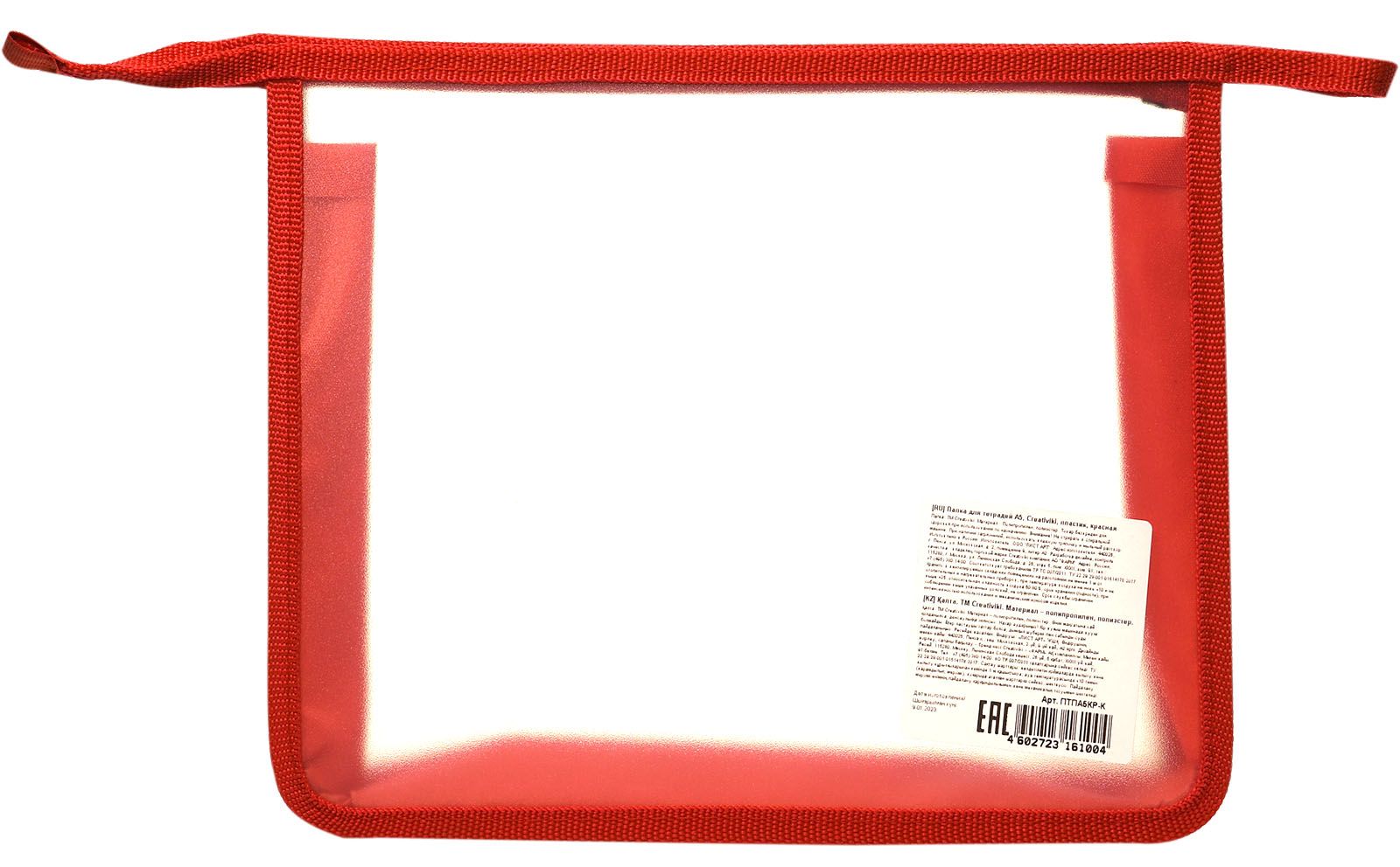 Формат: А5 Размер: 235х190х50 мм Вид изделия: Папка для тетрадей Количество секций: 1 отделение Материал: пластик Пол ребенка: универсальный Мин. партия и варианты упаковок: 1 / 50 Папка для тетрадей 1 отделение А5 Creativiki красная, молния сверху, пластик, универсальная