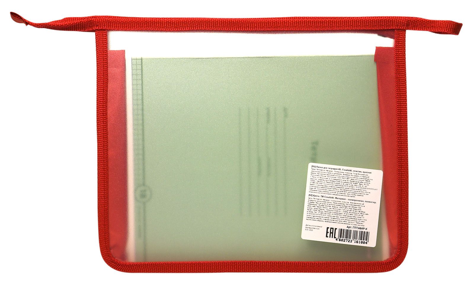 Папка для тетрадей 1 отделение А5 Creativiki красная, молния сверху, пластик, универсальная