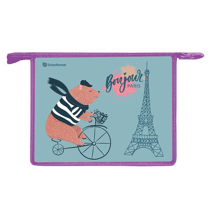 Папка для тетрадей 1 отделение, А5, Schoolformat КАНИКУЛЫ В ПАРИЖЕ, 235х190х50, молния сверху, пластик