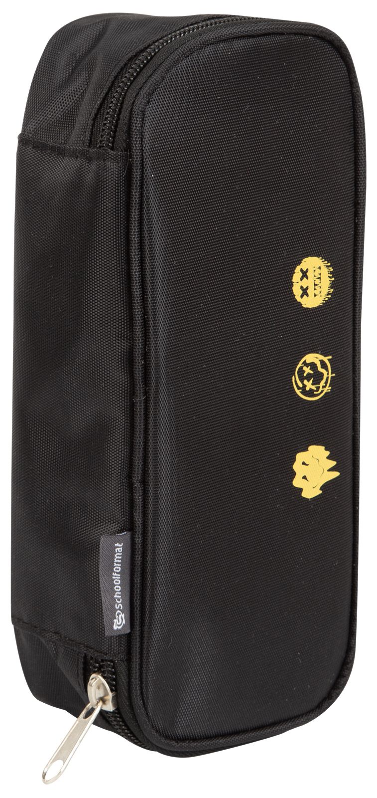 Размер: 210х55х100 мм Вид изделия: Пенал Количество секций: односекционный Материал: полиэстер Форма: прямоугольная Пол ребенка: универсальный Мин. партия и варианты упаковок: 1 / 10 / 100 Пенал односекционный Schoolformat СМАЙЛ 210х55х100 мм, черный полиэстер, с 1 откидной планкой
