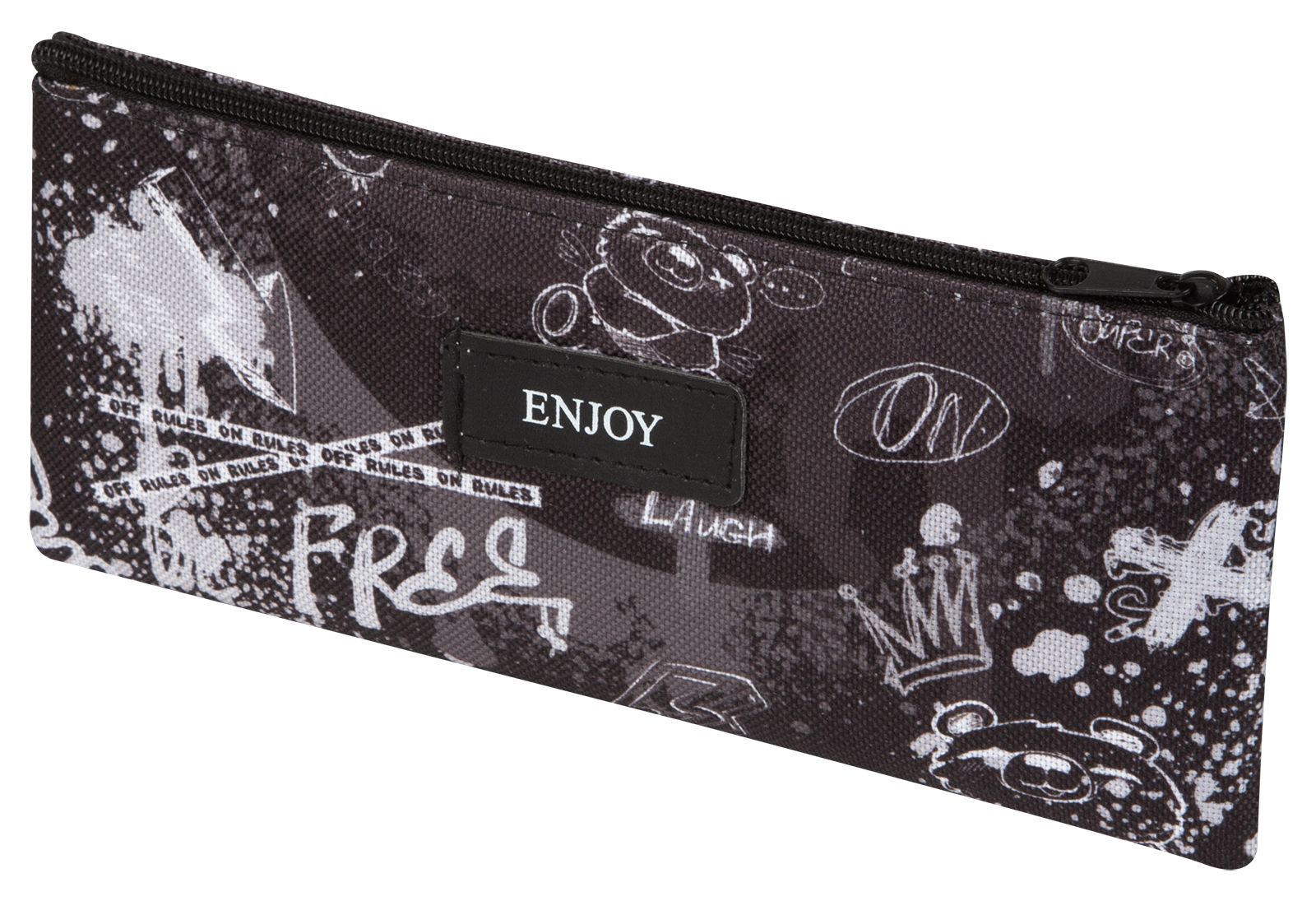 Размер: 200х90х5 мм Вид изделия: Пенал Количество секций: 1 отделение Материал: полиэстер Форма: прямоугольная Пол ребенка: универсальный Мин. партия и варианты упаковок: 1 / 12 / 600 Пенал 1 отделение Creativiki ГРАФФИТИ 200х90х5 мм черный, полиэстер