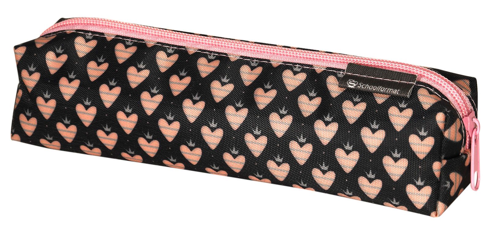 Пенал-тубус 1 отделение Schoolformat ПАТТЕРН СЕРДЕЧКИ 195х45х45 мм черный, полиэстер