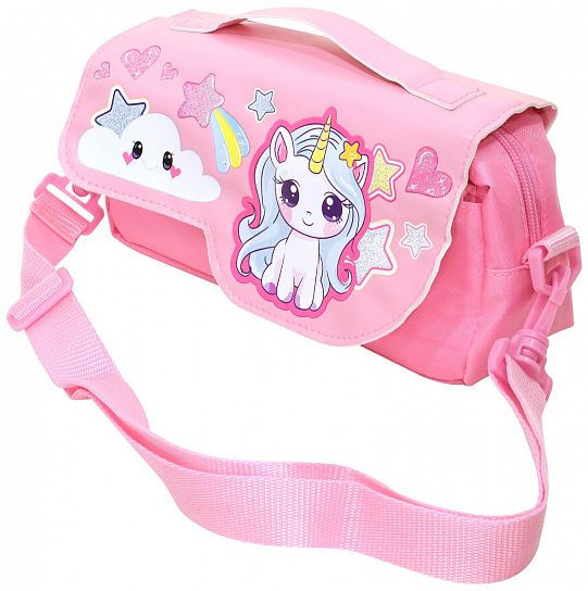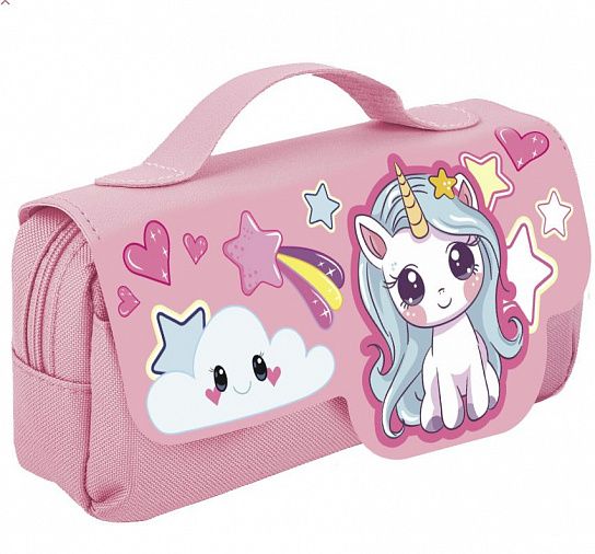 Пенал-сумка Каляка-Маляка пойдет по вкусу любой девочке. Пенал оснащен основным отделением, карманом на передней части и декоративной откидной планкой с изображением единорога и блестками. Все отделения и карманы застегиваются на молнию с фирменным бегунком. В комплекте к пеналу идет регулируемый съемный ремешок, который позволяет использовать пенал, как сумку.