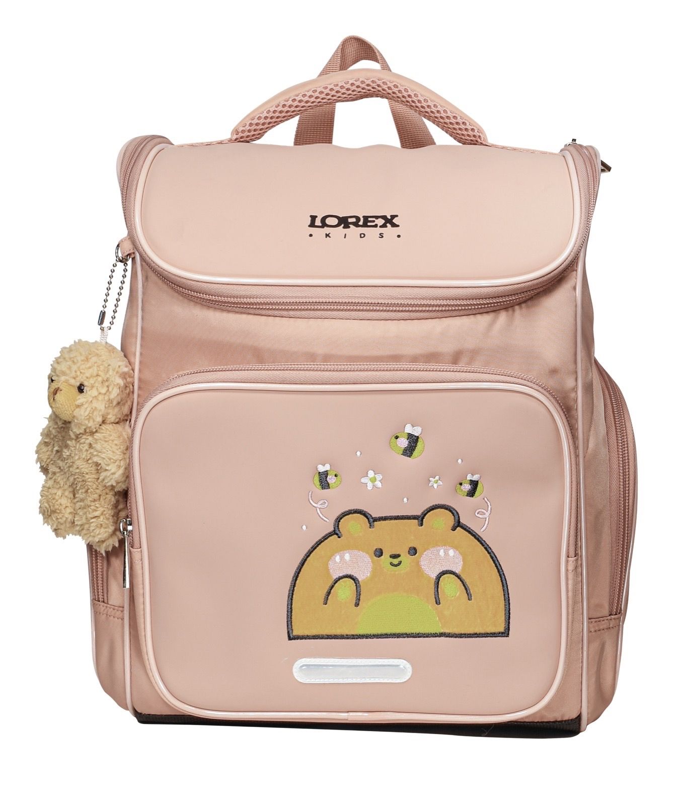 Рюкзак школьный LOREX KIDS CLASSIC - классическая форма. Данная модель имеет одно отделение с двумя делителями для тетрадей и учебников А4. Форма простая и удобная для школьников младшего возраста, так как имеет только одну молнию. Большой карман на лицевой стороне не только дополняет дизайн, но также достаточно большой для пенала и имеет внутри органайзер для мелочей. Два боковых кармана удобны для ношения воды и мелочей. Жесткий каркас обеспечит тетрадям и учебникам сохранность. Эргономичная спинка с пенкой позволяет равномерно распределять вес, что поможет школьнику сохранить правильную осанку. Мягкие широкие лямки регулируются по высоте, а нагрудная фиксация гарантирует комфортное ношение рюкзака. Светоотражающие элементы 360° обеспечивают безопасность в темное время суток. Рюкзак выполнен из высокопрочного нейлона и элементами из экокожи. Имеется: расписание уроков, крепление для ключей/пропуска, защита дна от загрязнений, брелок, держатель для карточки.