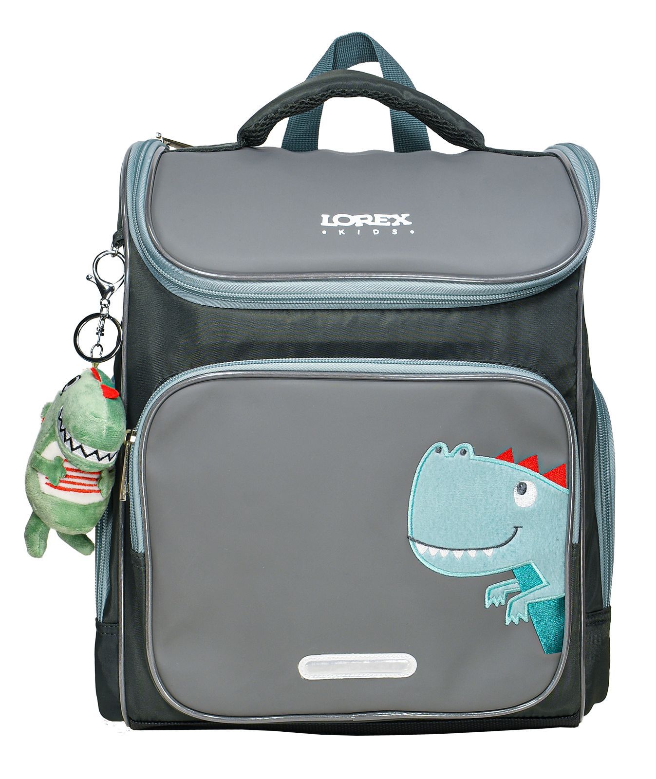 Рюкзак школьный LOREX KIDS CLASSIC - классическая форма. Данная модель имеет одно отделение с двумя делителями для тетрадей и учебников А4. Форма простая и удобная для школьников младшего возраста, так как имеет только одну молнию. Большой карман на лицевой стороне не только дополняет дизайн, но также достаточно большой для пенала и имеет внутри органайзер для мелочей. Два боковых кармана удобны для ношения воды и мелочей. Жесткий каркас обеспечит тетрадям и учебникам сохранность. Эргономичная спинка с пенкой позволяет равномерно распределять вес, что поможет школьнику сохранить правильную осанку. Мягкие широкие лямки регулируются по высоте, а нагрудная фиксация гарантирует комфортное ношение рюкзака. Светоотражающие элементы 360° обеспечивают безопасность в темное время суток. Рюкзак выполнен из высокопрочного нейлона и элементами из экокожи. Имеется: расписание уроков, крепление для ключей/пропуска, защита дна от загрязнений, брелок, держатель для карточки.