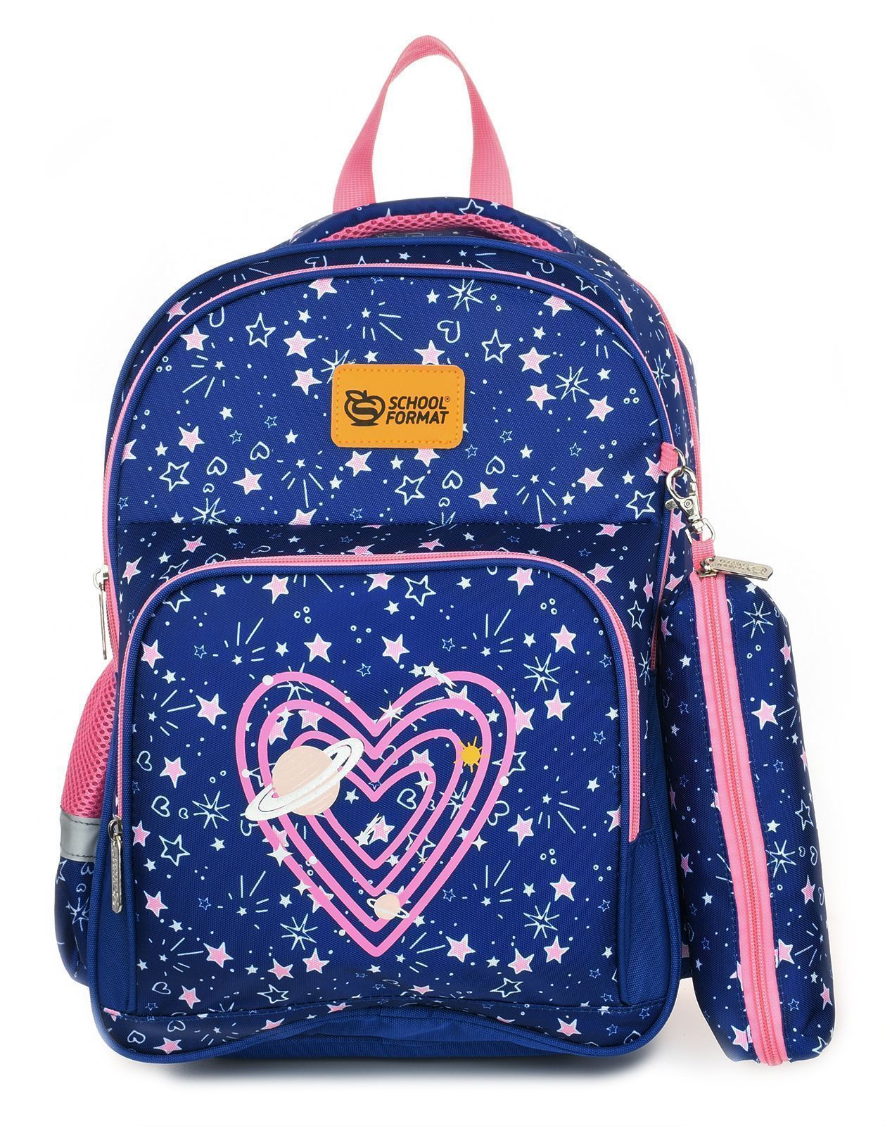 В комплекте с рюкзаком идет пенал-тубус для канцелярских принадлежностей. Есть светоотражающие элементы для безопасности в темноте. Стильный дизайн привлечет внимание школьной аудитории.